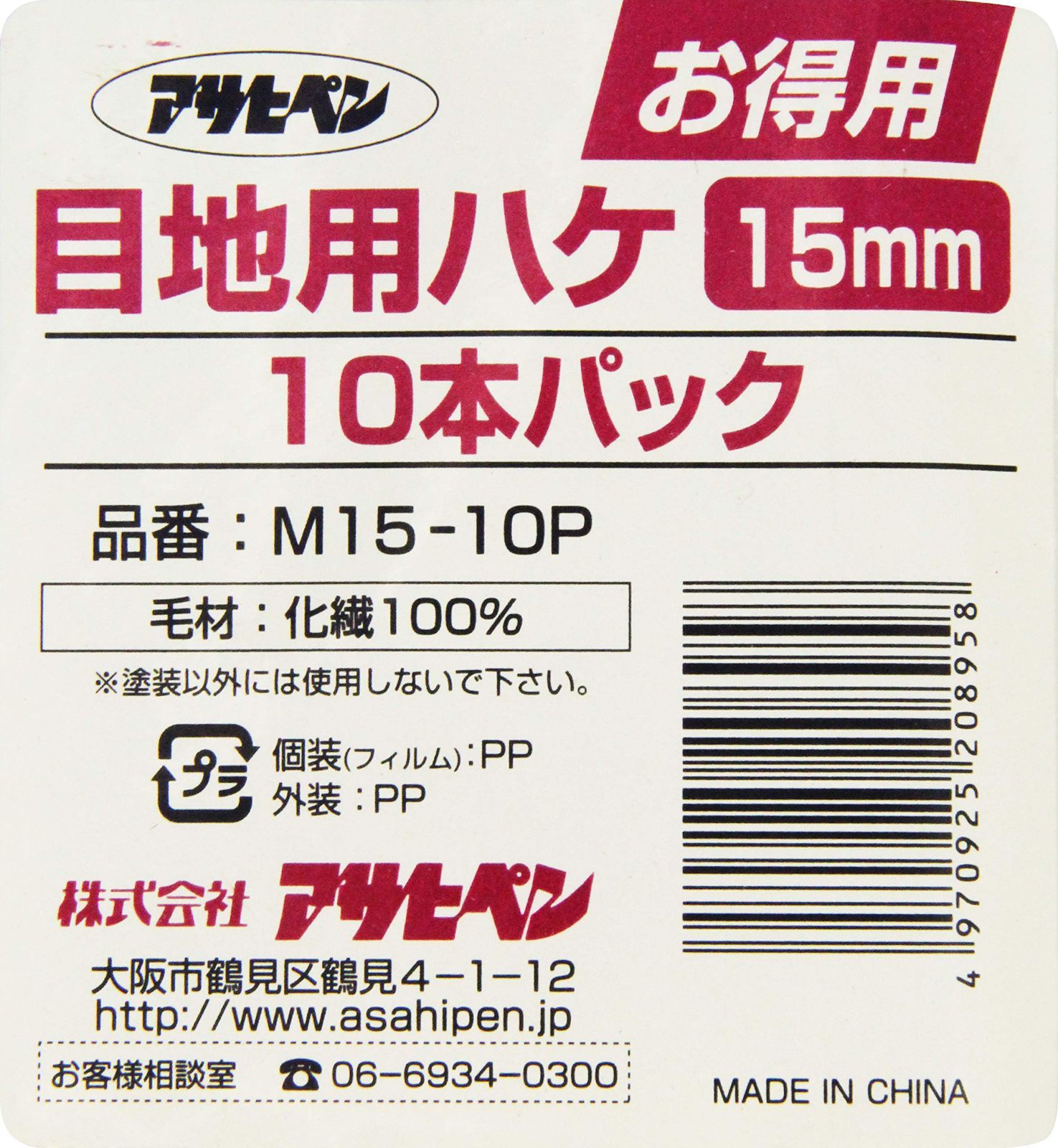 アサヒペン 刷毛 お得用目地用刷毛 10本パック 15mm m15-10P
