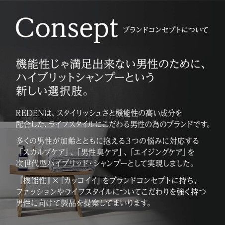 REDENは、スタイリッシュさと機能性の高い成分を配合した、ライフスタイルにこだわる男性の為のブランドです。