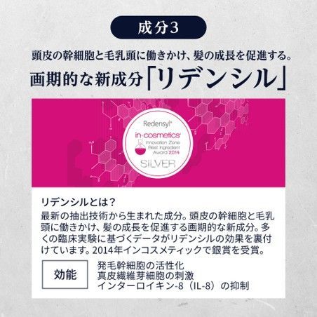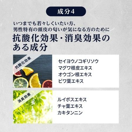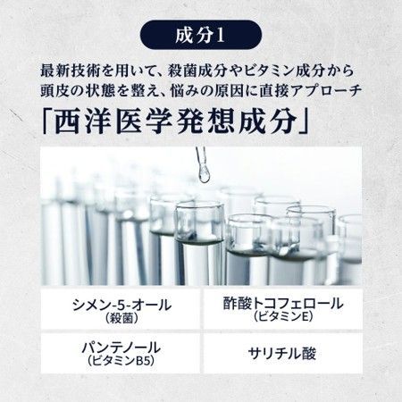 多くの男性が加齢とともに抱える3つの悩みに対応する「スカルプケア」、「男性臭ケア」、「エイジングケア」を次世代型ハイブリッド・シャンプーとして実現しました。