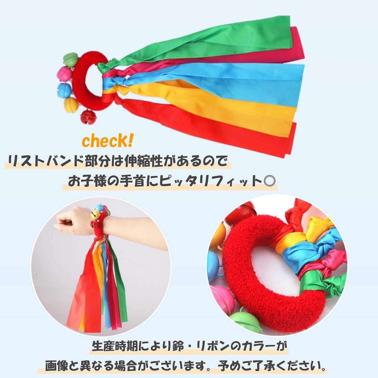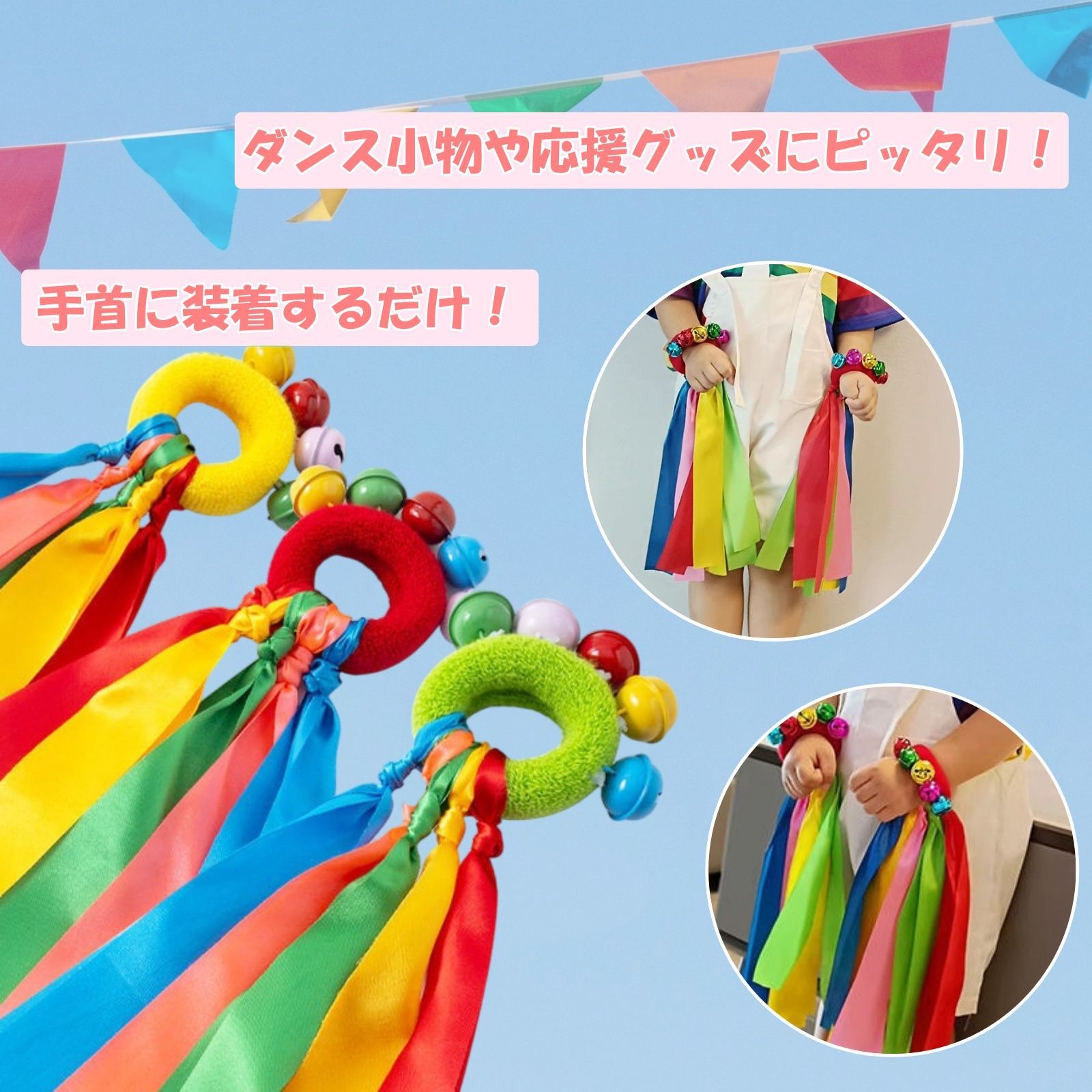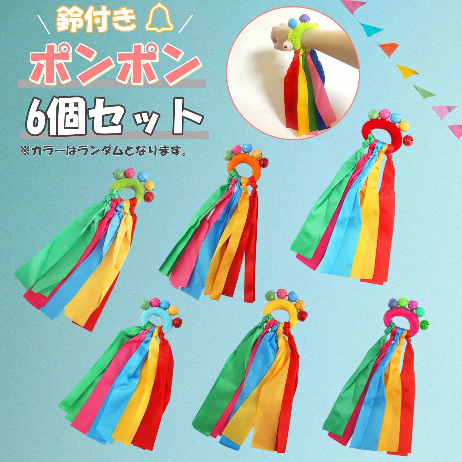 カラフルリボンが目を惹く鈴付きのリストポンポンです。