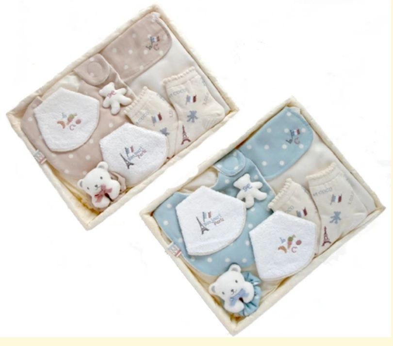 ヨーロッパテーストの押さえた色目が可愛いベビーギフトセットが出来ました。