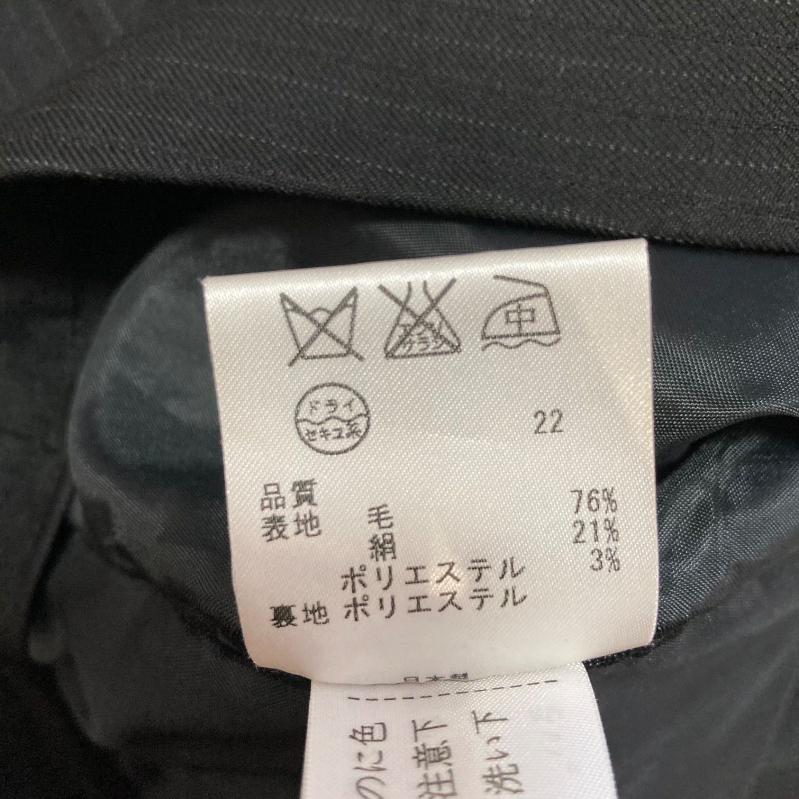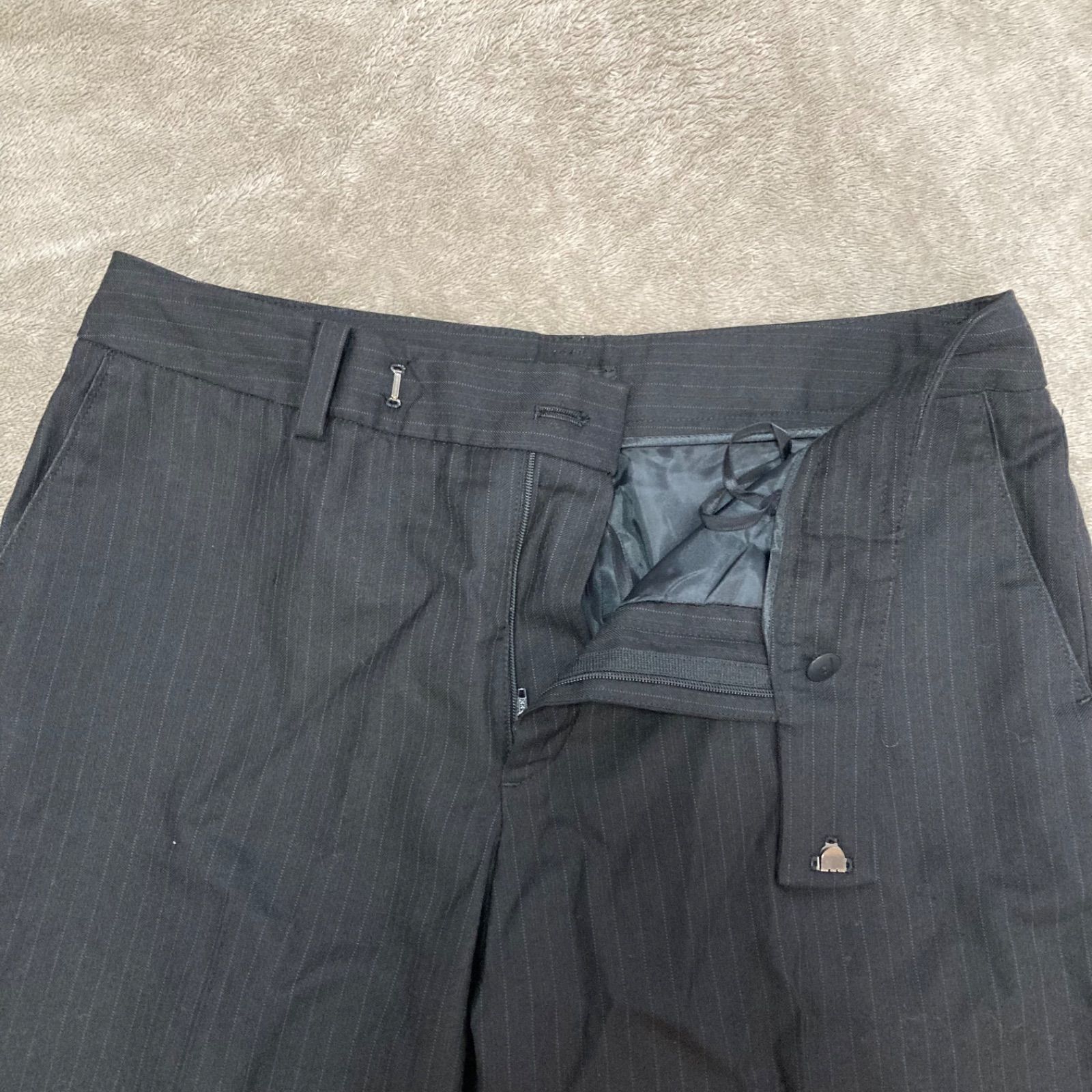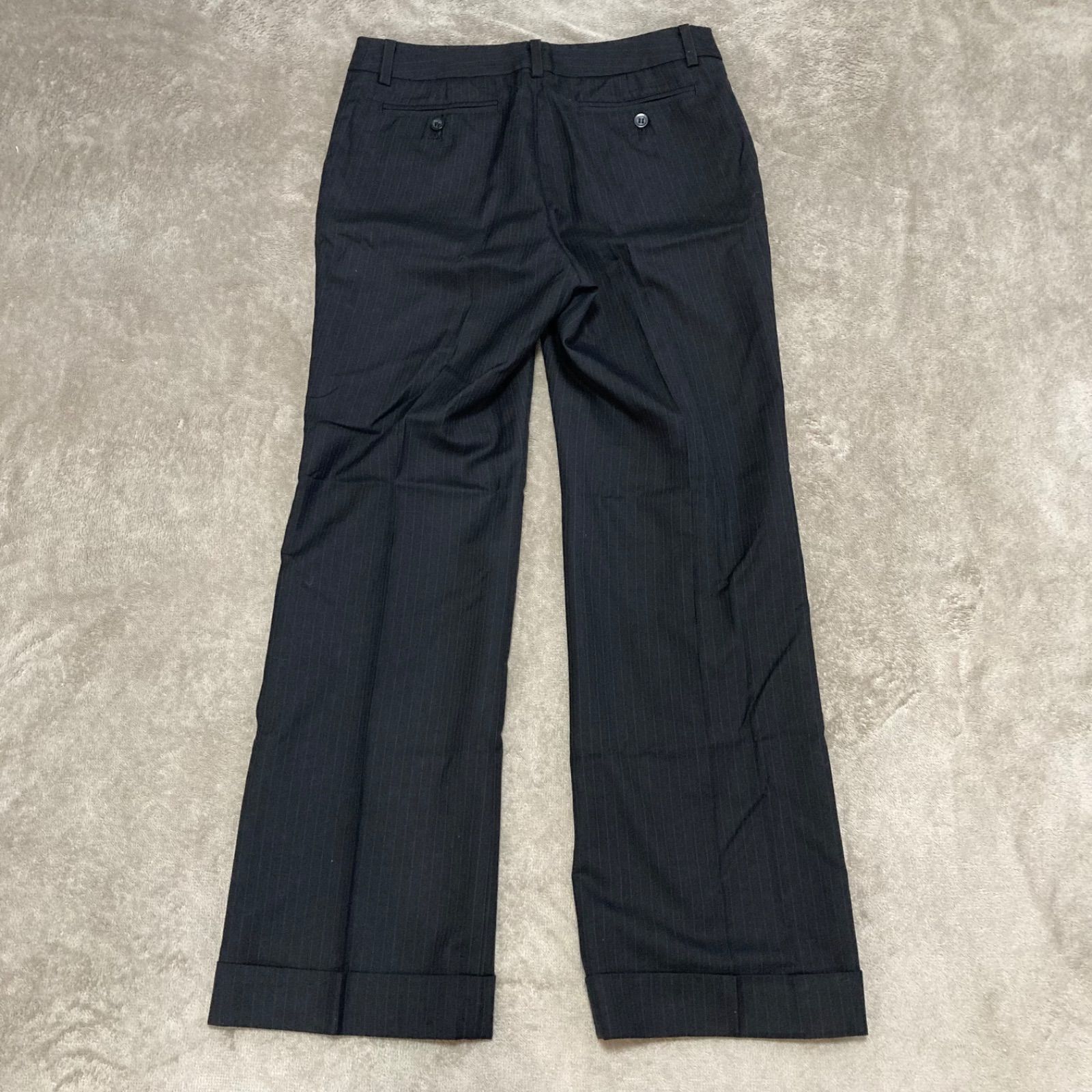 23区 オンワード樫山 スラックス パンツ ストライプ ノータック センタープレス シルク混 44 黒 ブラック