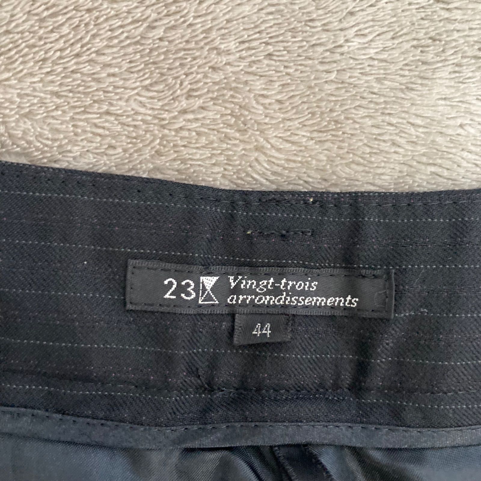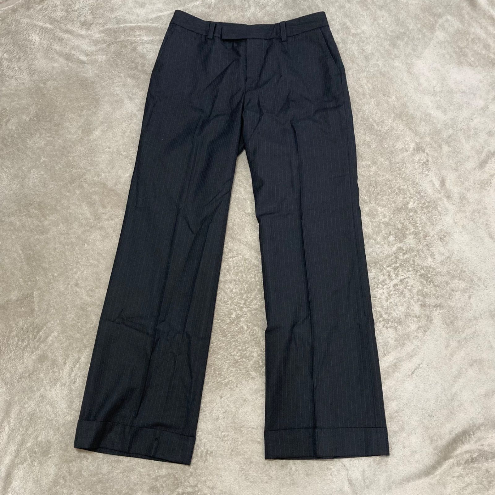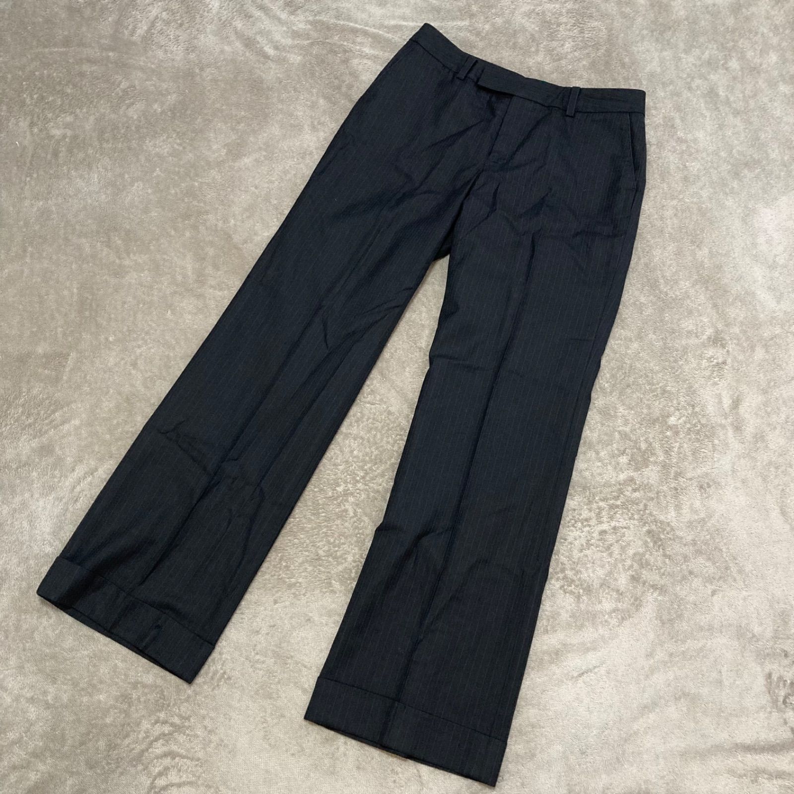 23区 オンワード樫山 スラックス パンツ ストライプ ノータック センタープレス シルク混 44 黒 ブラック