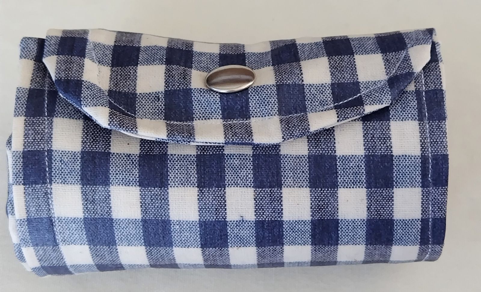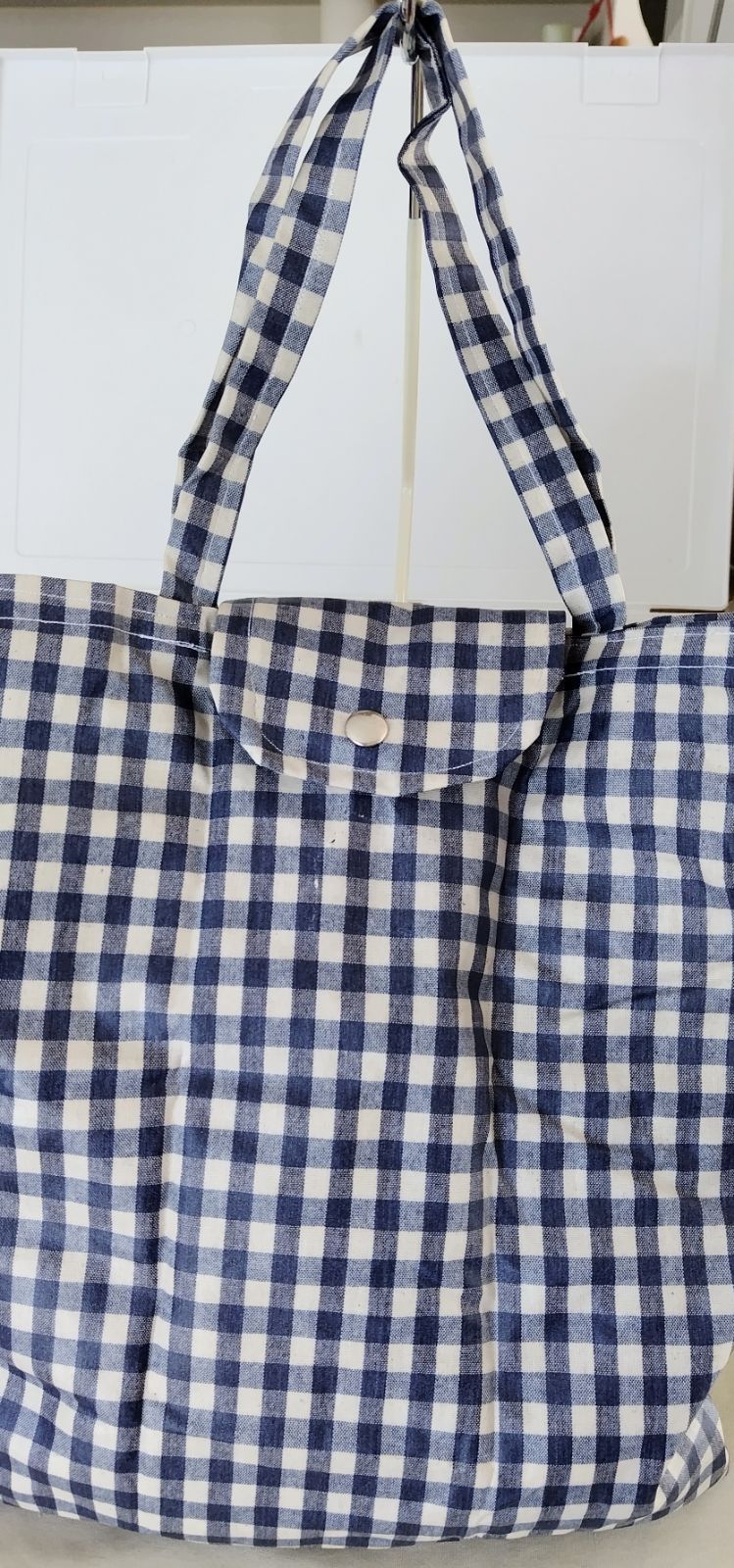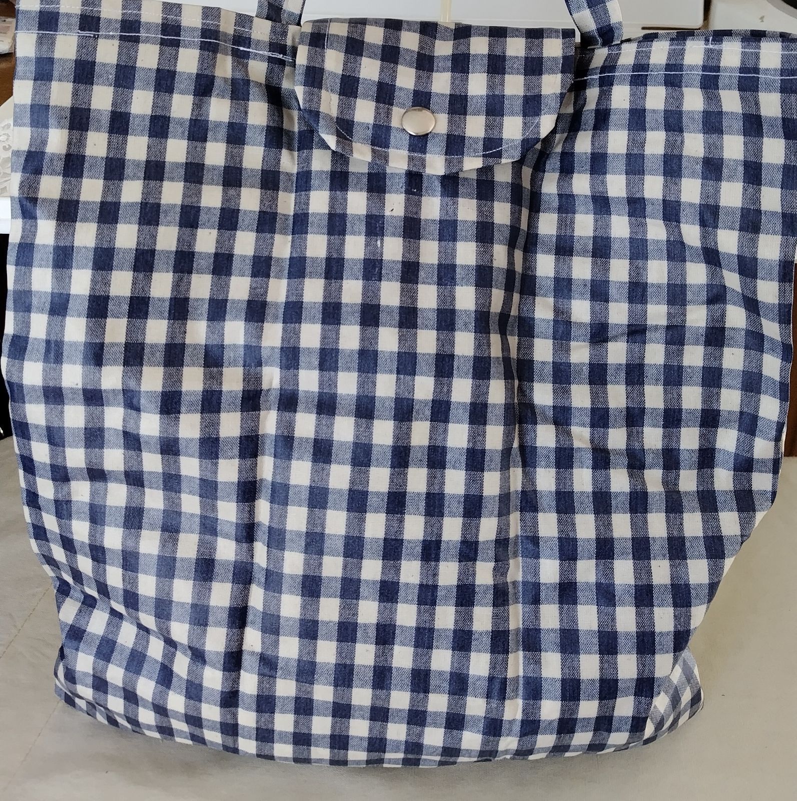 かわいくたためるエコバッグ ブルー チェック ラミネート生地