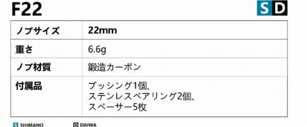 シマノ Aダイワ Sスピニングリール推奨番型500-2500 (3000)ベイトリール推奨番型-300 400 F22鍛造カーボンリールノブ 22mm ブラック