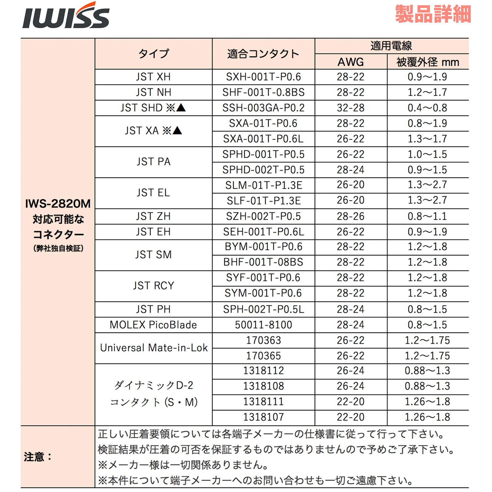 サイズ: 極小端子用 IWS-2820M