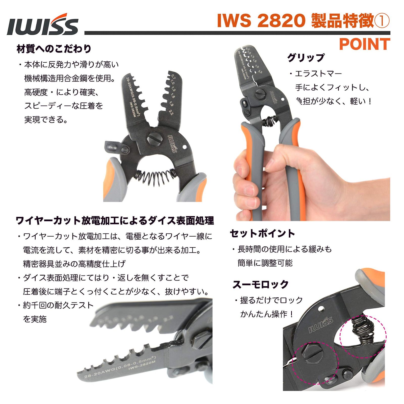 アイウィス(IWISS) 精密圧着ペンチ オープンバレル端子用 0.08-0.5mm2極小端子用 IWS-2820M