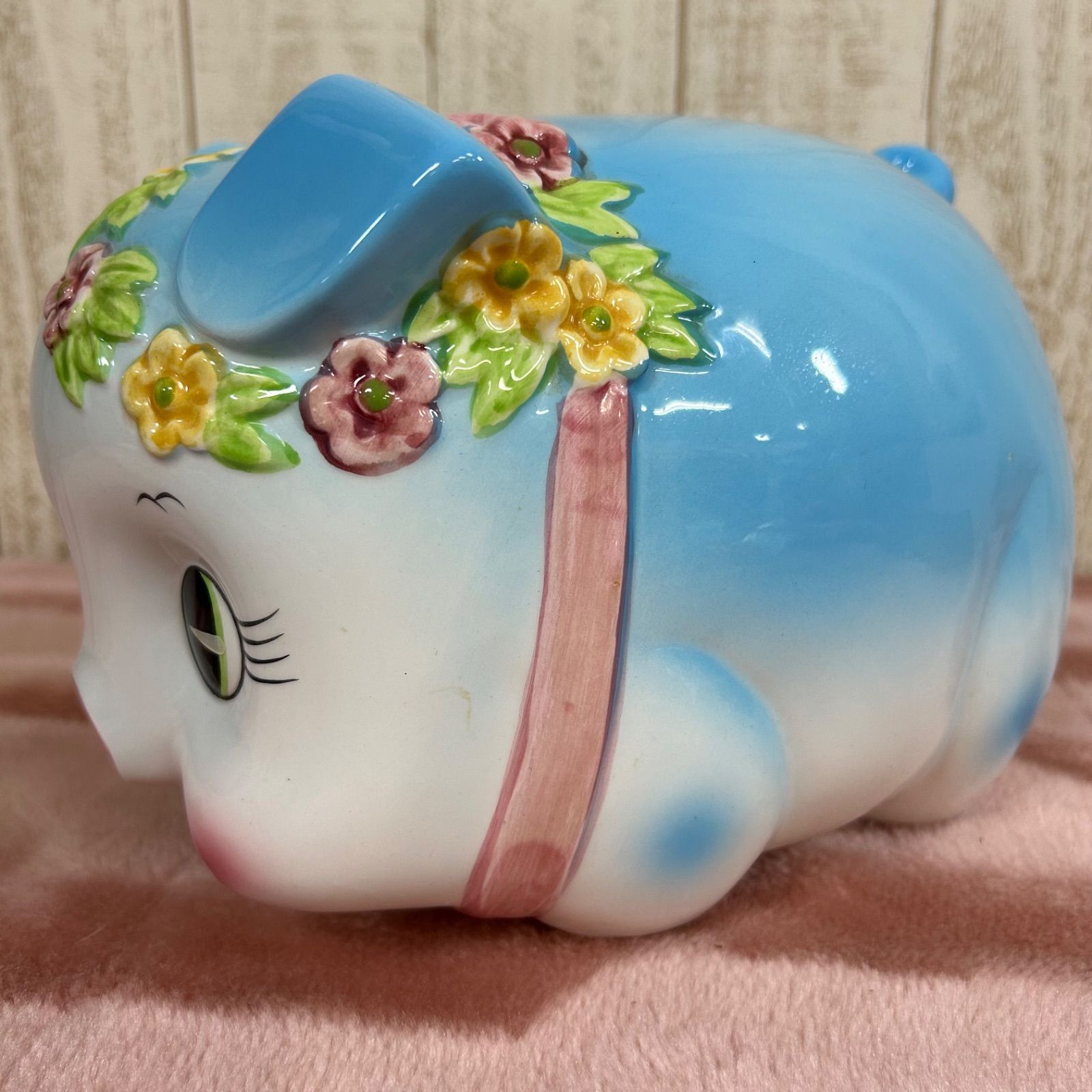 珍しい水色の豚の貯金箱