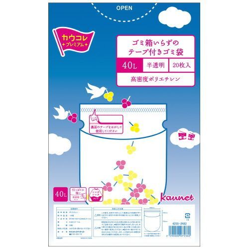 ゴミ箱いらずのテープ付きゴミ袋 40L 20枚4255-2482【カウネット】