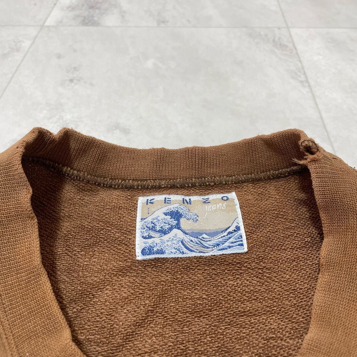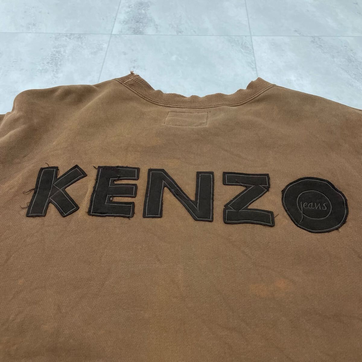 KENZO ケンゾー 北斎タグ スウェット sweat トレーナー バックフェルトプリント 90s ヴィンテージ KENZO Jeans ブラウン サイズL相当 玉FL3904