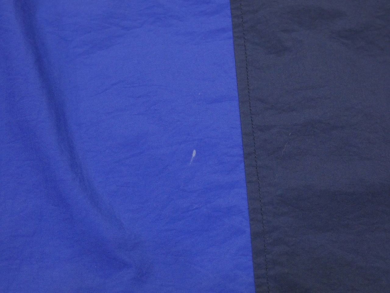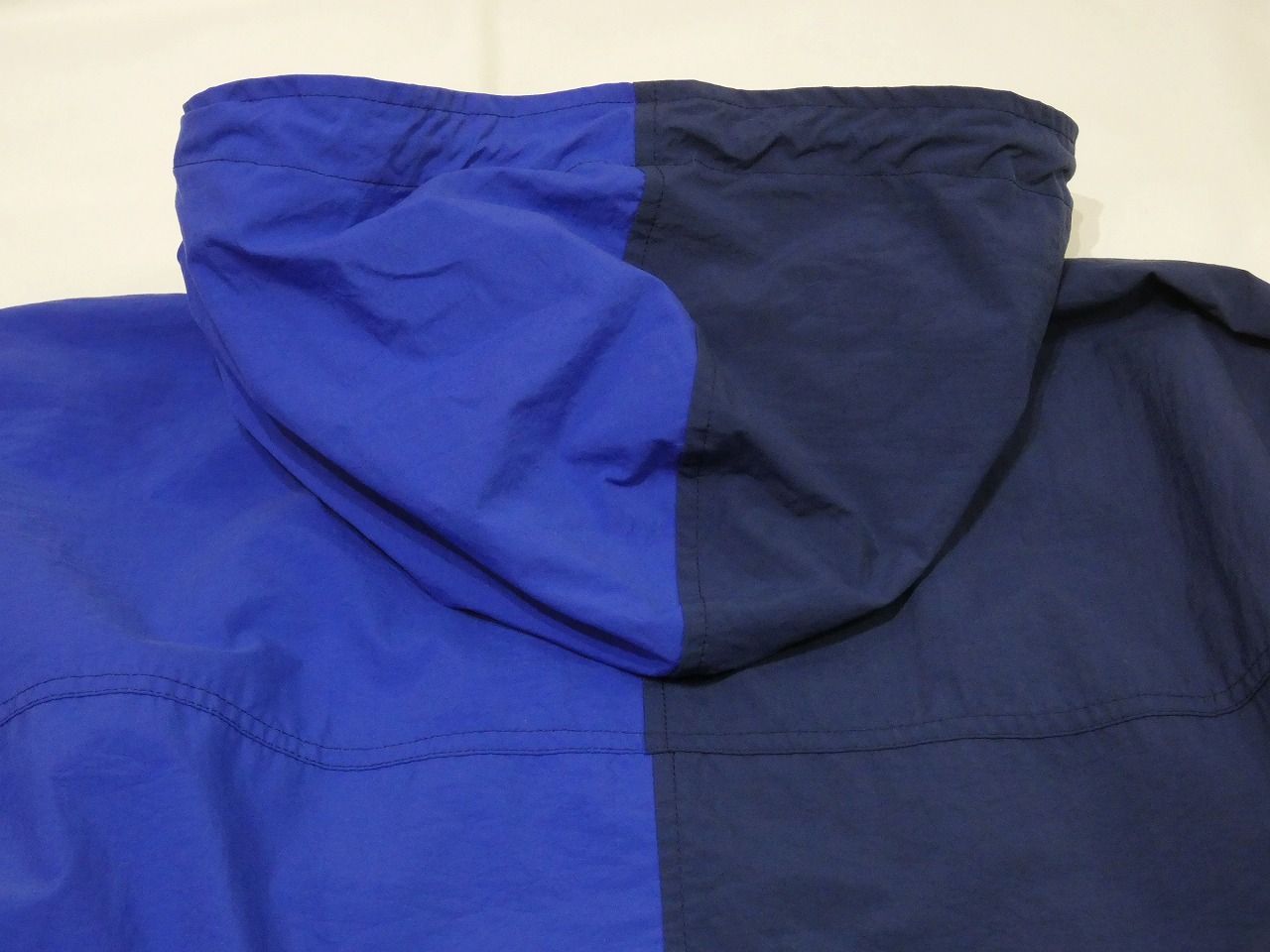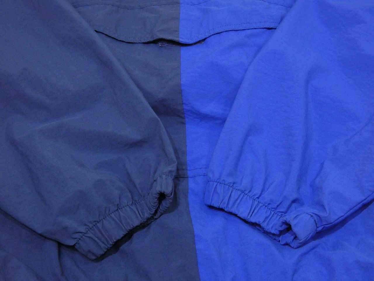 OLD GAPの中でも名作の1つで、ネイビー×ブルーのツートン切り替えのアノラックは、ありそうであまりなくとても斬新です。ナイロン100%の軽めの生地はオールシーズン活躍間違いと思います。サイズ表記はXLですが、表記ほど大きく感じず、プルオーバーなら逆にこの位のサイズが無いと着づらさを感じるかもしれません。年代のわりに殆ど市場でも見かけませんので、お探しだったかは是非、ご検討下さい。