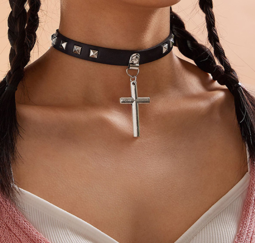 ○クロス(十字架)とスタッズのデザインのチョーカーです。