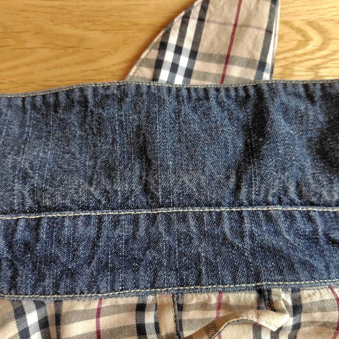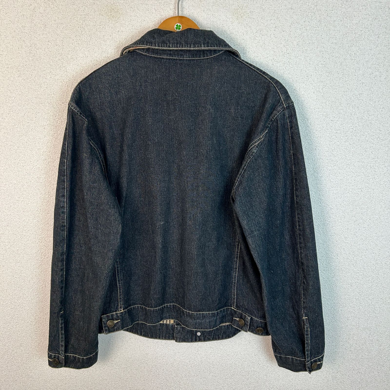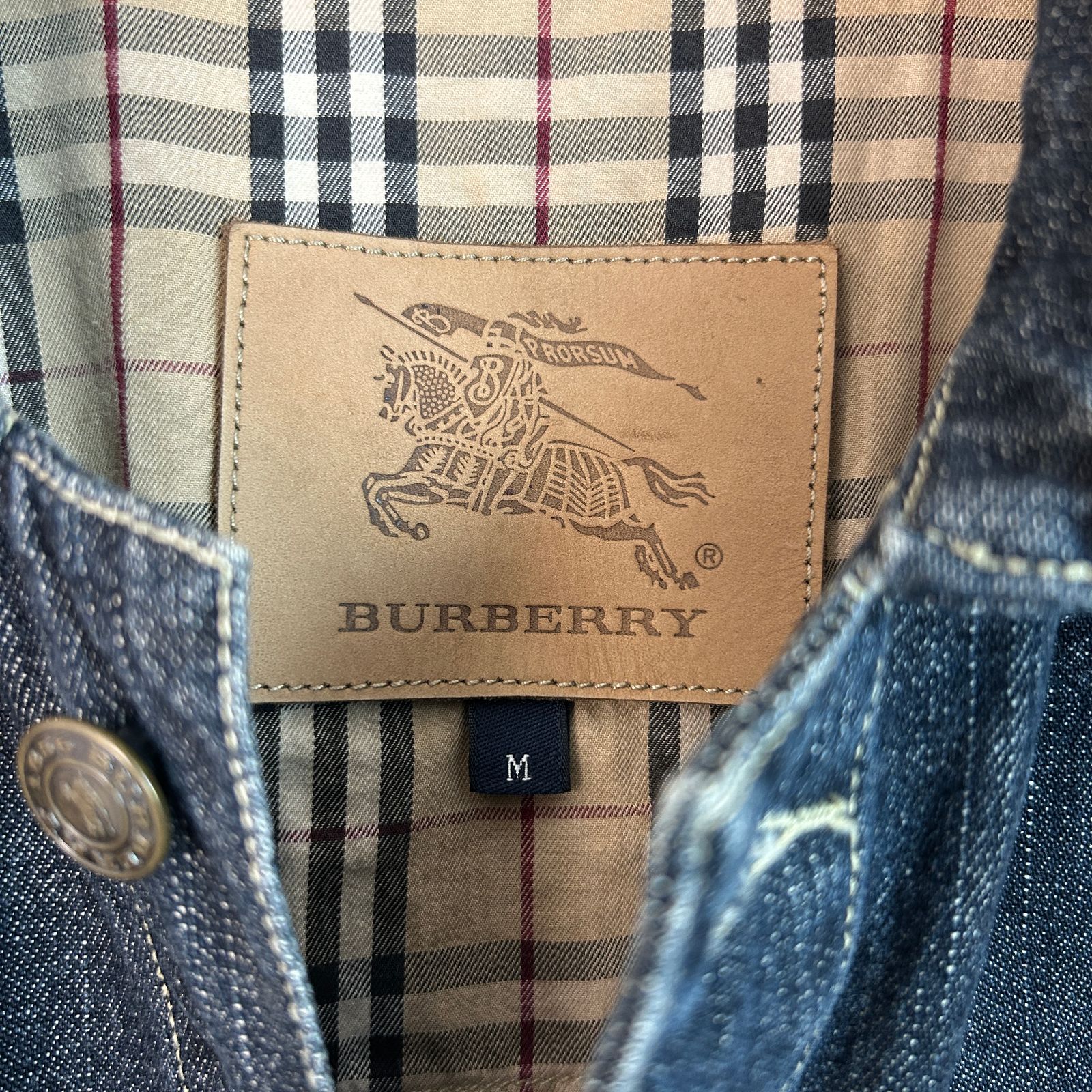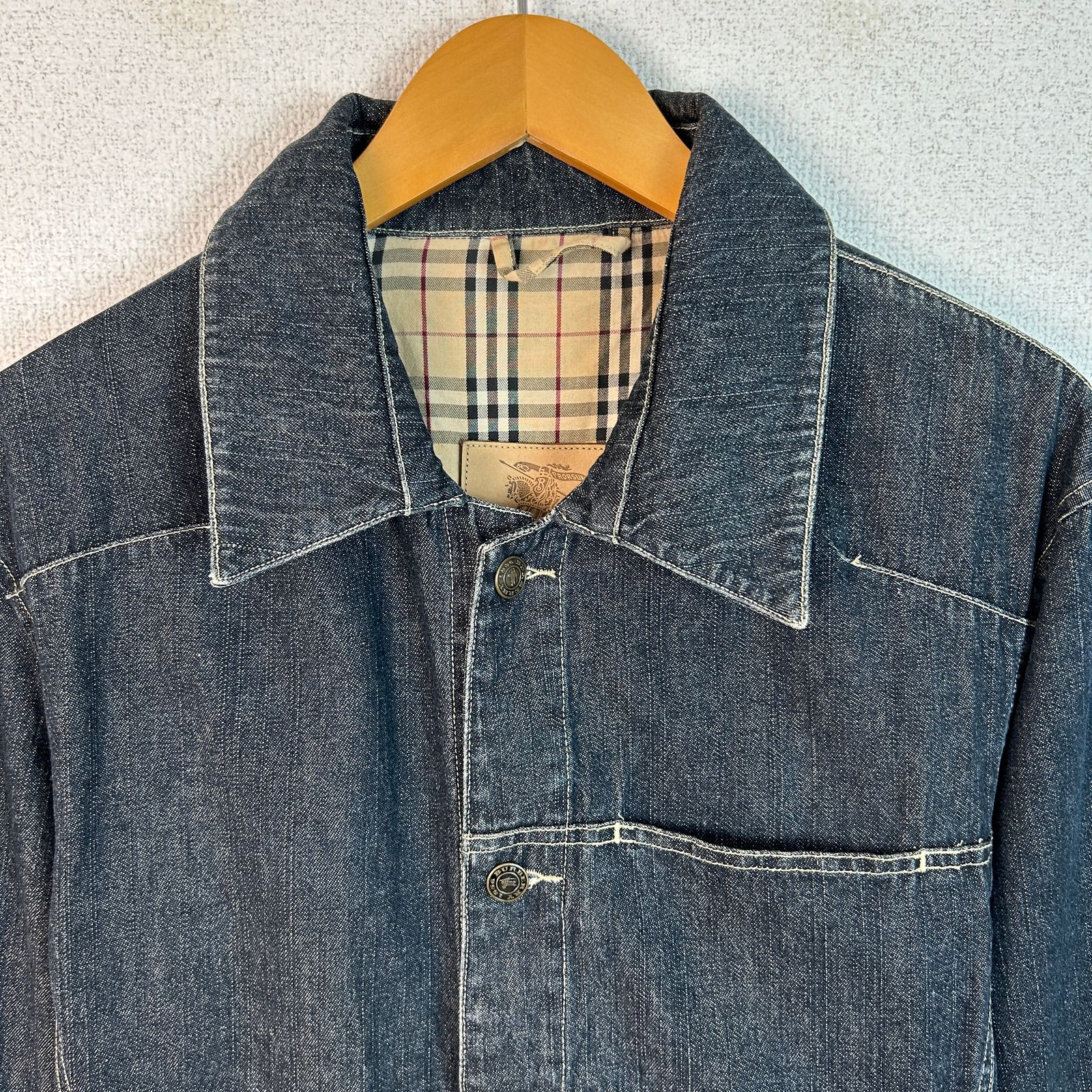 BURBERRY バーバリー デニムジャケット Gジャン ジージャン 長袖 ノバチェック レザーパッチ インディゴブルー ネイビー 紺 Mサイズ メンズ 古着 アメカジ モード 襟付き 胸ポケット 春服 秋服 冬服