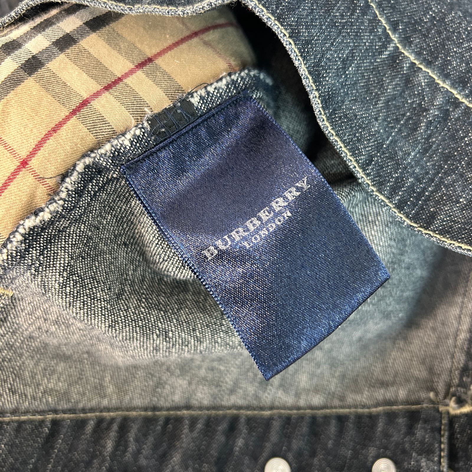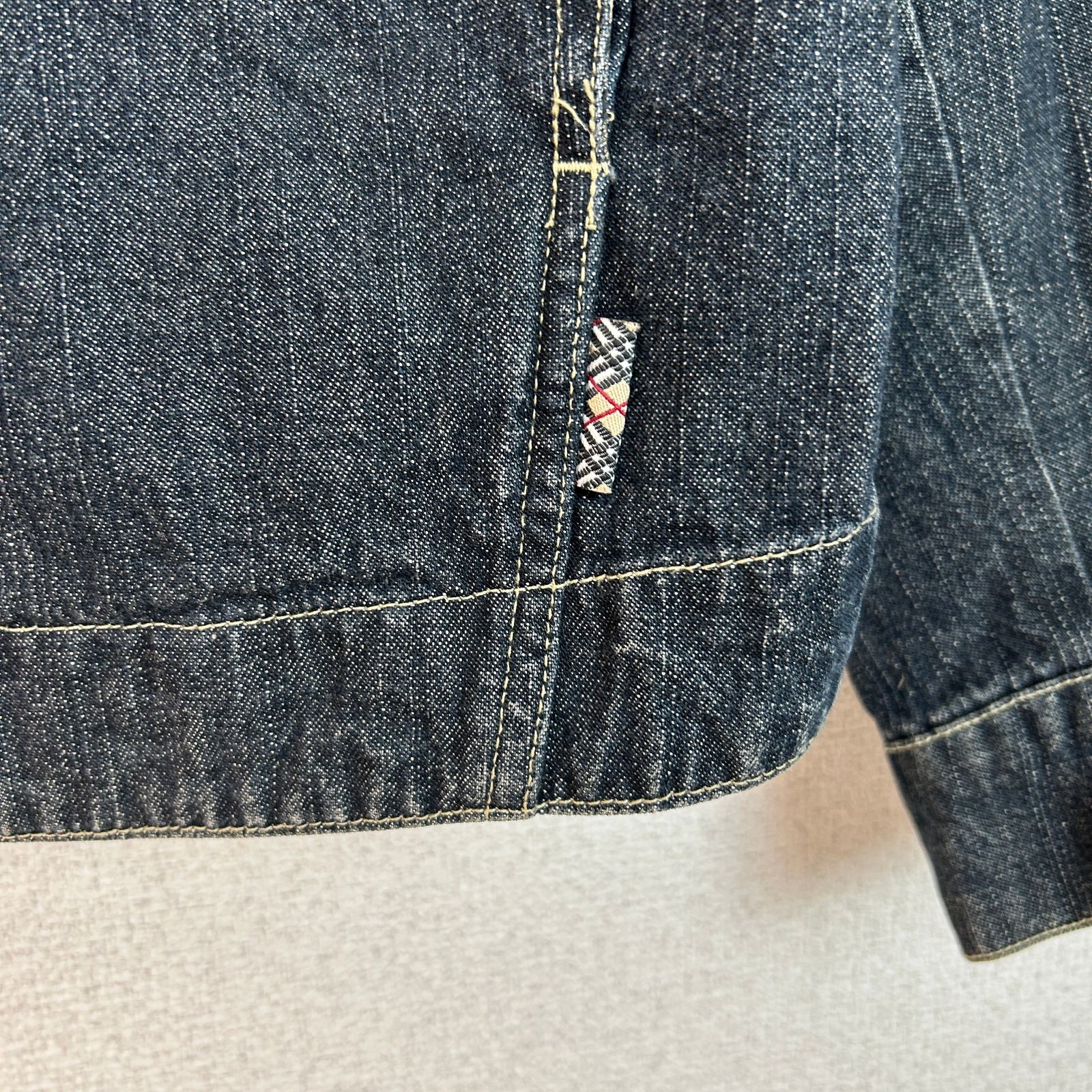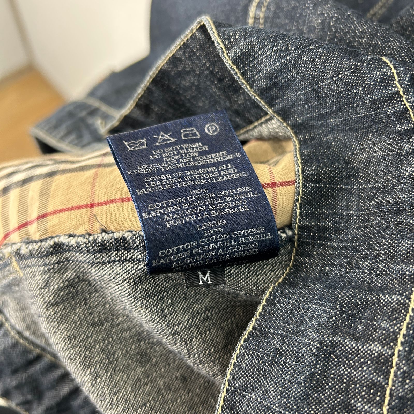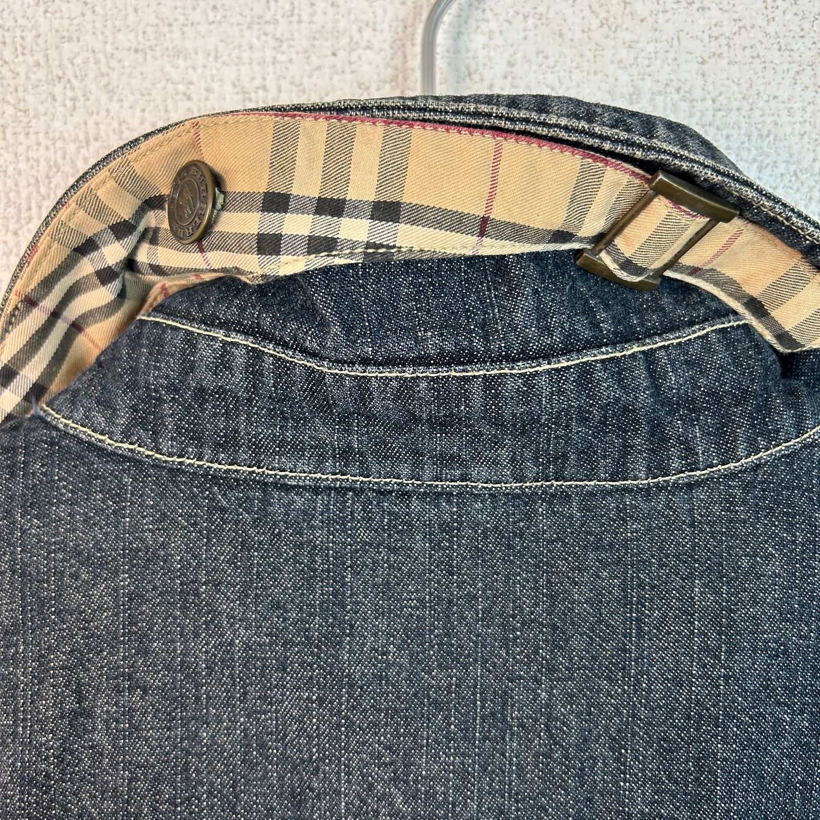 BURBERRY バーバリー デニムジャケット Gジャン ジージャン 長袖 ノバチェック レザーパッチ インディゴブルー ネイビー 紺 Mサイズ メンズ 古着 アメカジ モード 襟付き 胸ポケット 春服 秋服 冬服