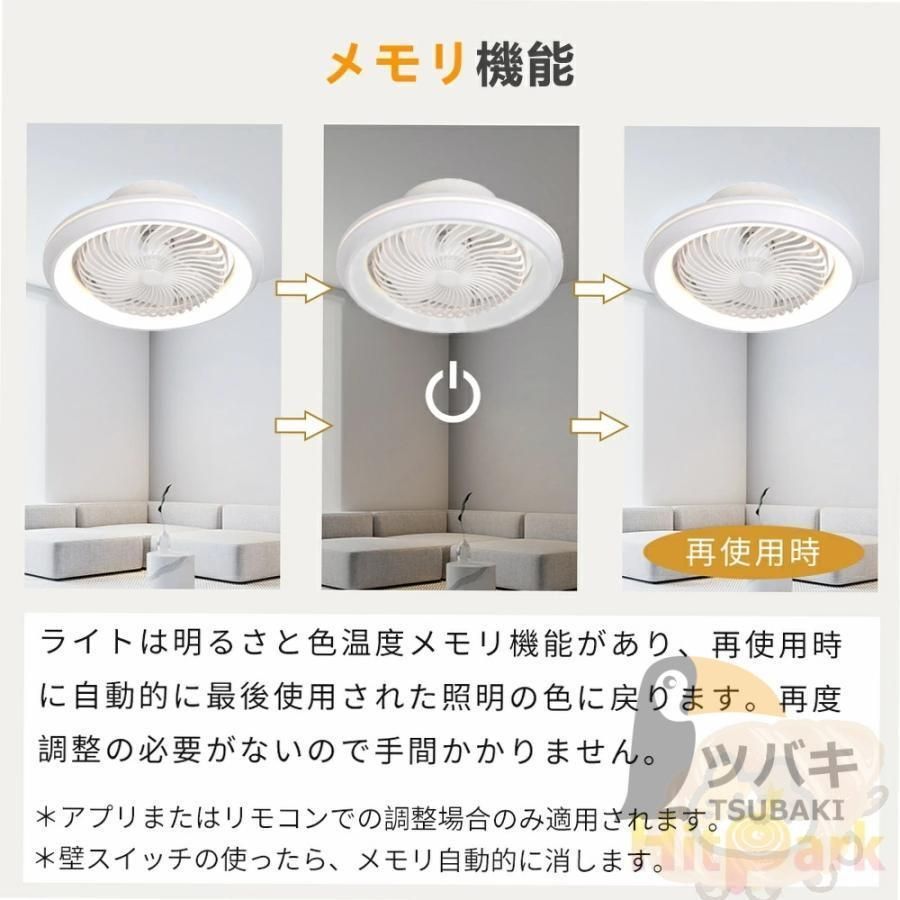 シーリングライトは3000K(暖色光)から4500K(中性光)、6000K(白色光)まで3段階の色温度調節が可能で、明るさは10%から100%まで調節可能です。ファンライトはリモコンとモバイルアプリで制御され、自由に調整できます。