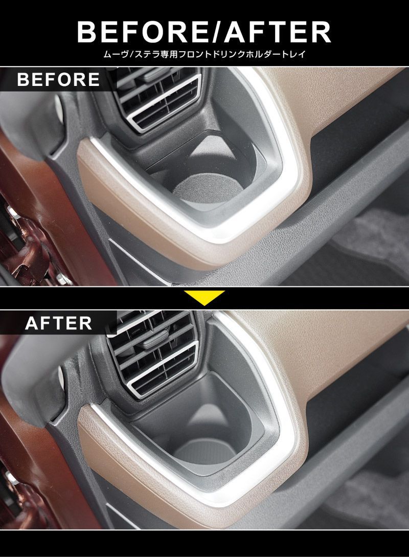 ダイハツ新型ムーヴ・スバル新型ステラ専用のフロントドリンクホルダー用トレイです。