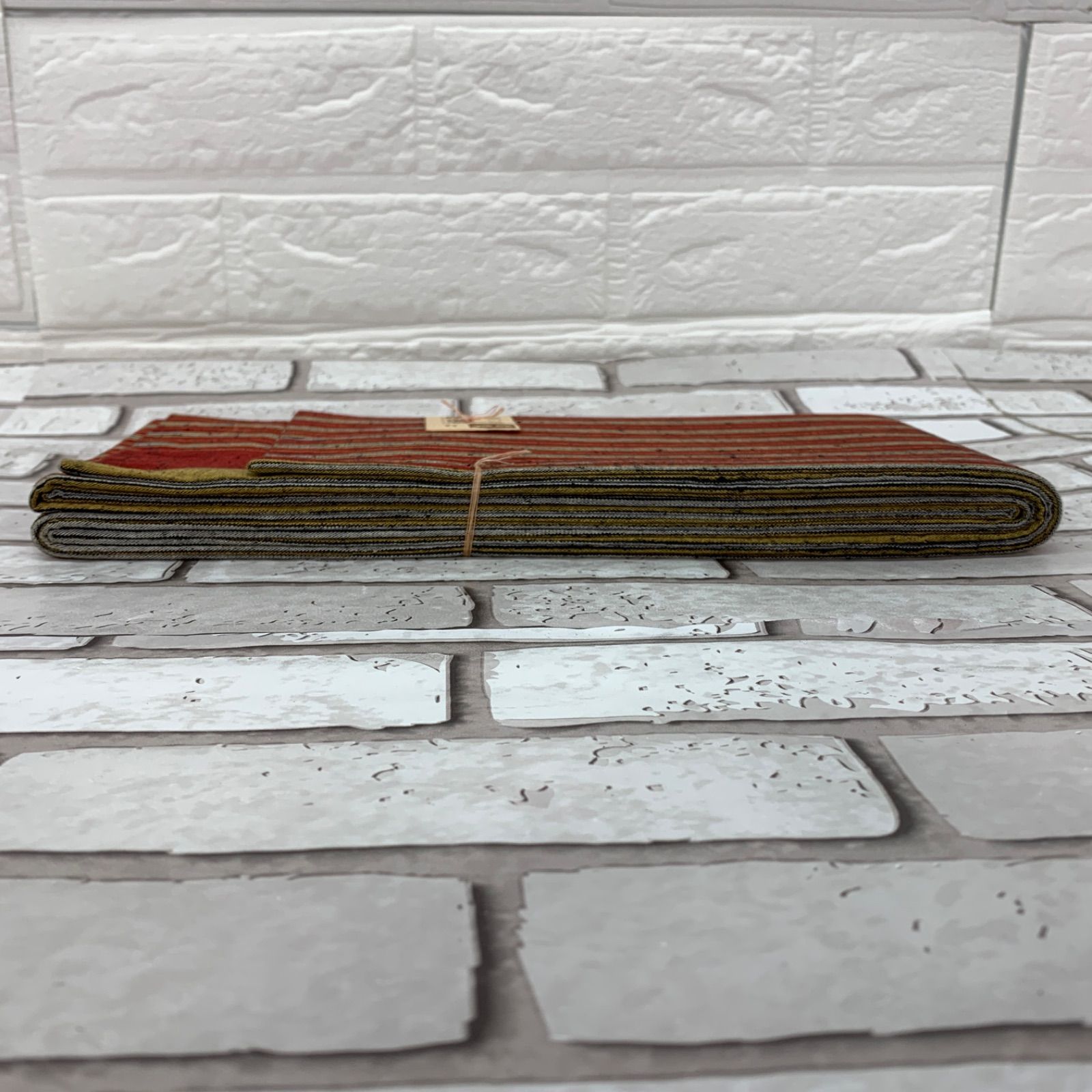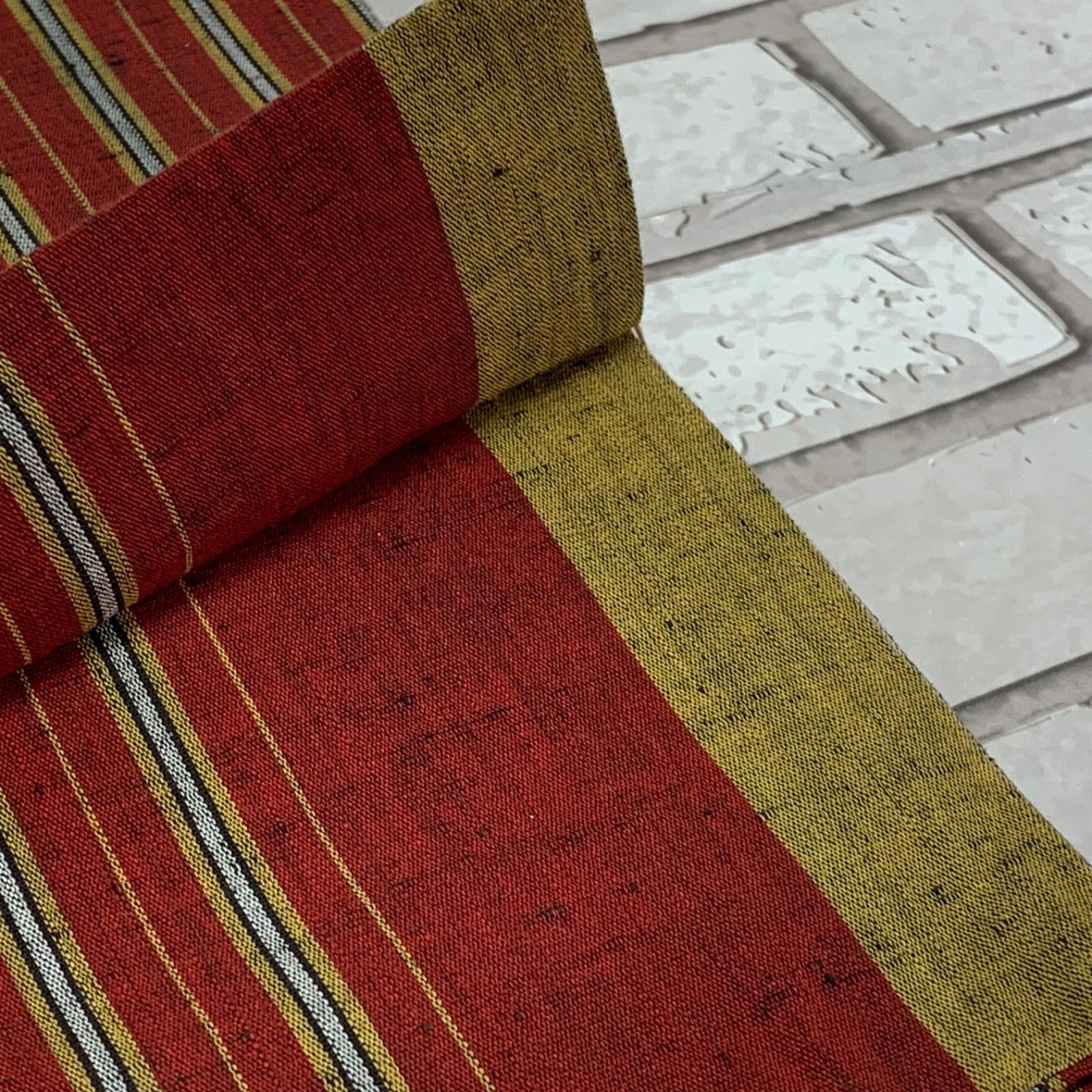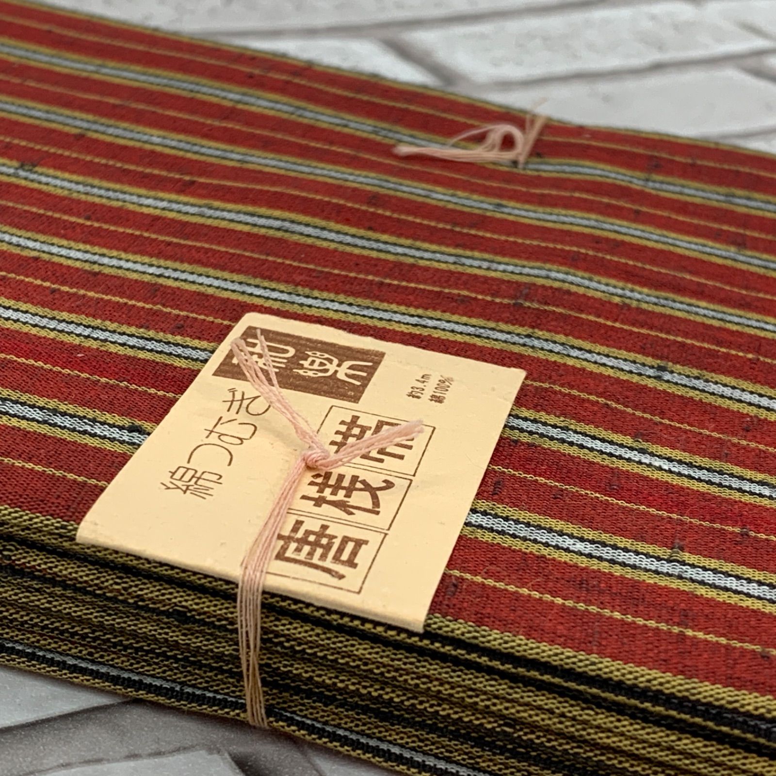 半巾帯 半幅帯 綿つむぎ 和楽 唐桟帯 綿100% 朱色系 ボーダー柄