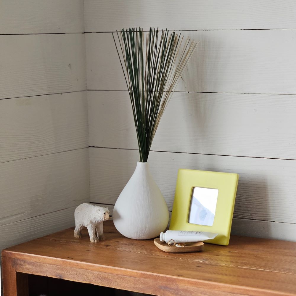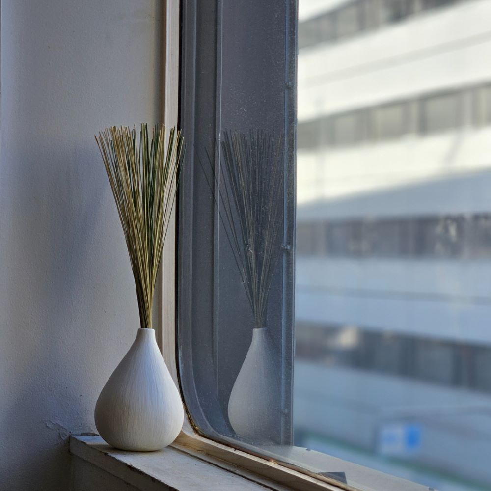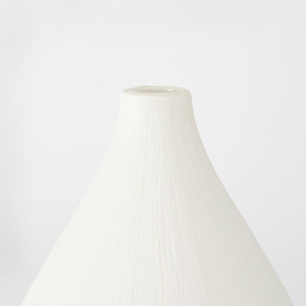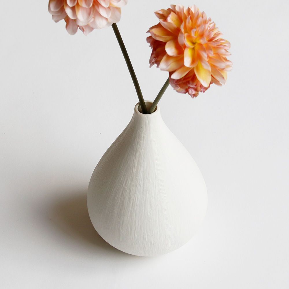 ナチュラルな白いボディに繊細なラインを施しており、どんなインテリにも馴染む主張しすぎないデザインなので、置くだけでお部屋が柔らかい印象を演出し、韓国インテリアや北欧インテリアとも相性抜群のフラワーベースです。