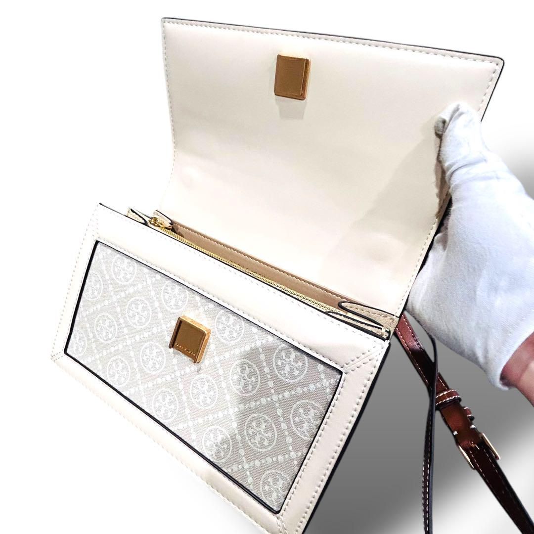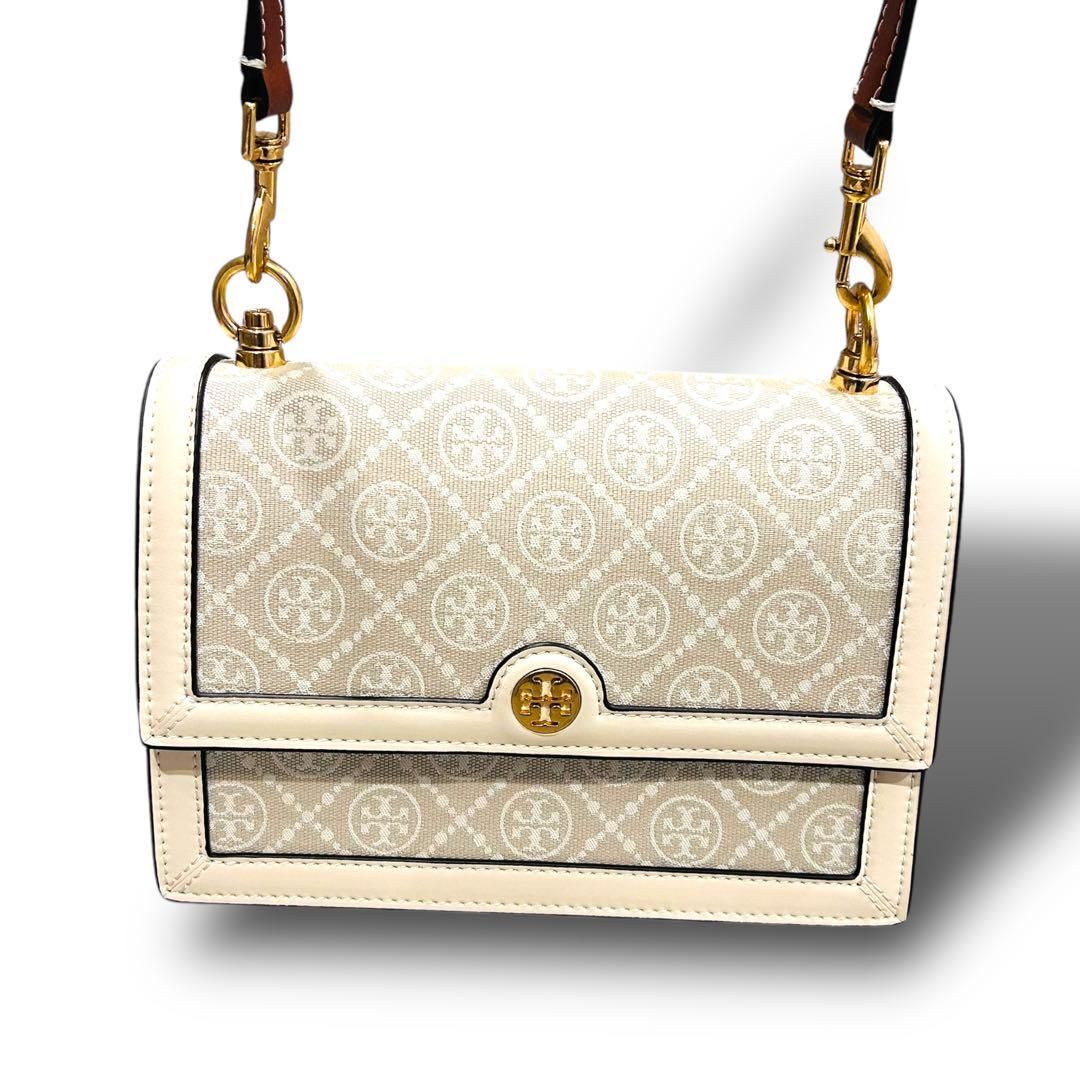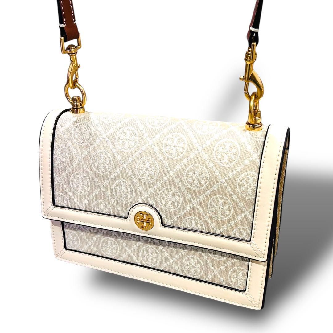 トリーバーチ レザー ロゴ 金具 ホワイト チェーンショルダー 斜め掛け 斜めがけ 肩がけ お出掛け おしゃれママ レディース ミドルブランド ティーモノグラム スモール