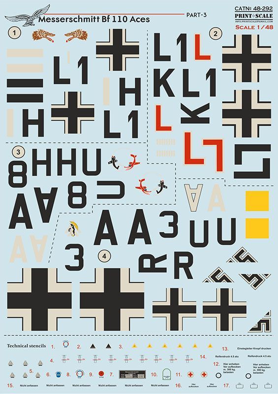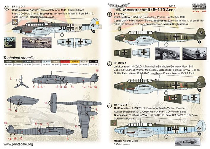 Print Scale 48-292 1/48 Messerschmitt Bf-110 Aces Part 3