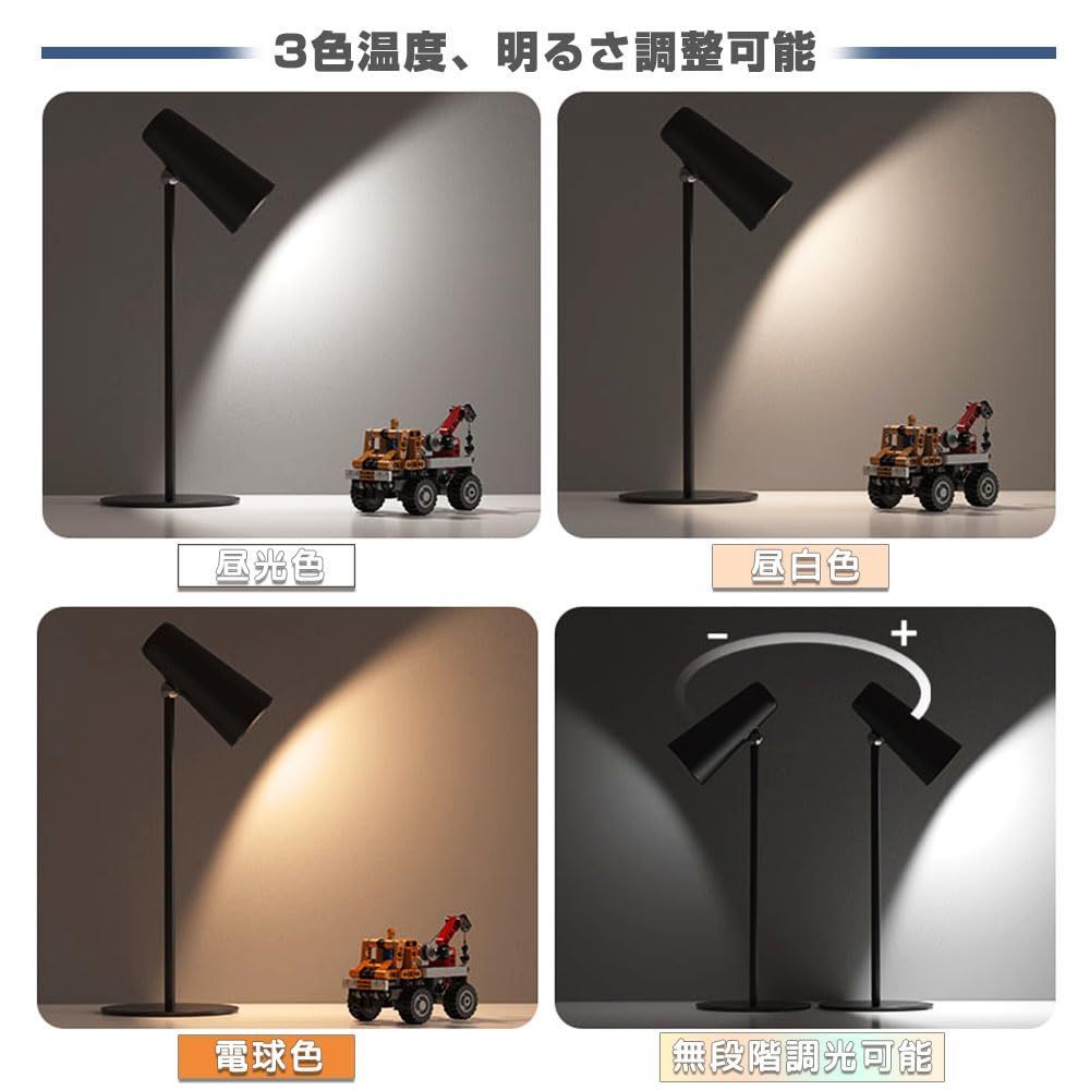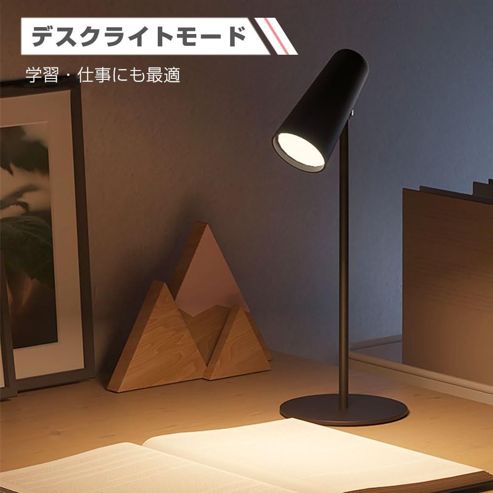 卓上ライト おしゃれ 充電式デスクライト 間接照明 コードレス マルチパーパスライト 手持ち可能 壁貼り可能 明るさ3段階調節 リビング/寝室/書斎用 シンプル LEDライト (ブラック)