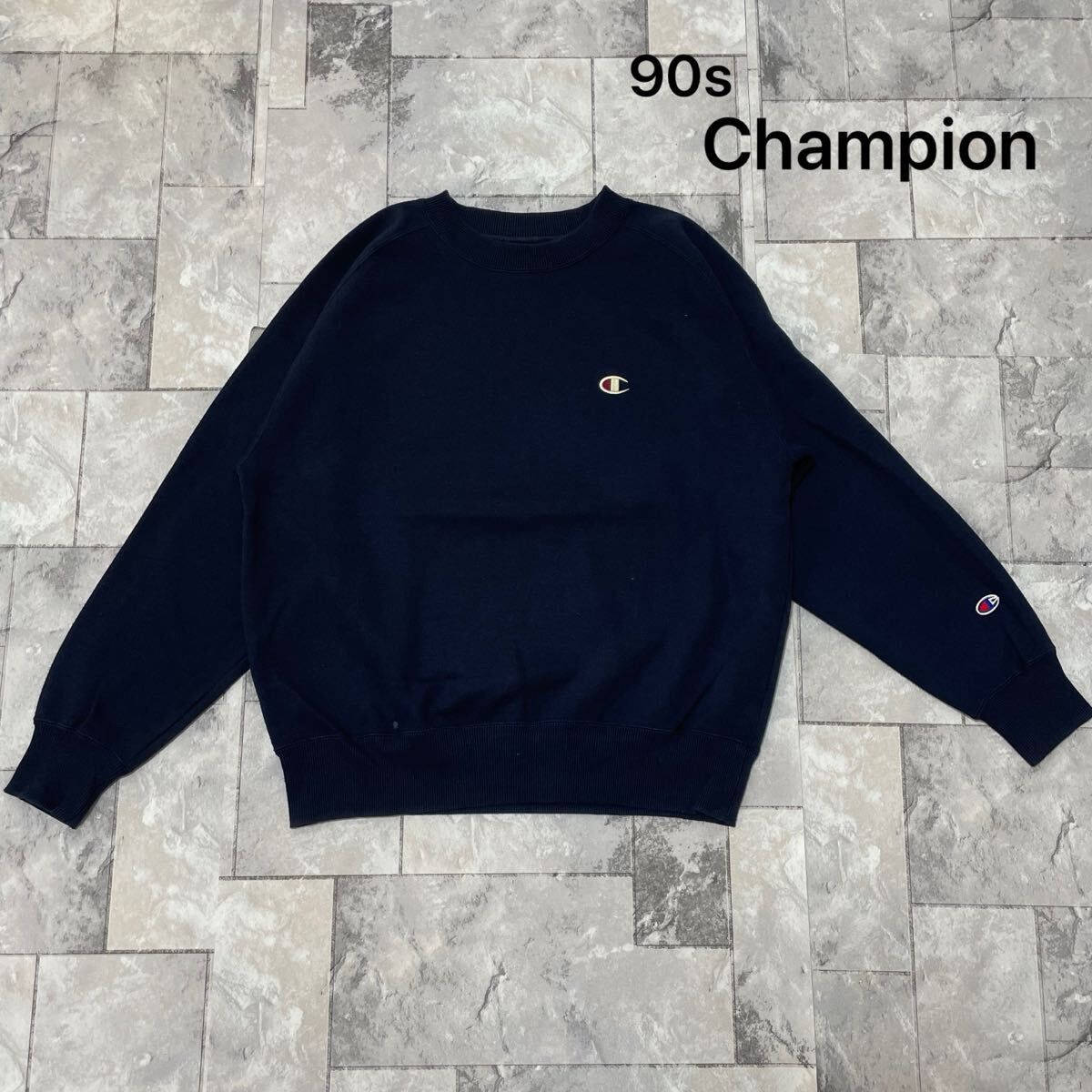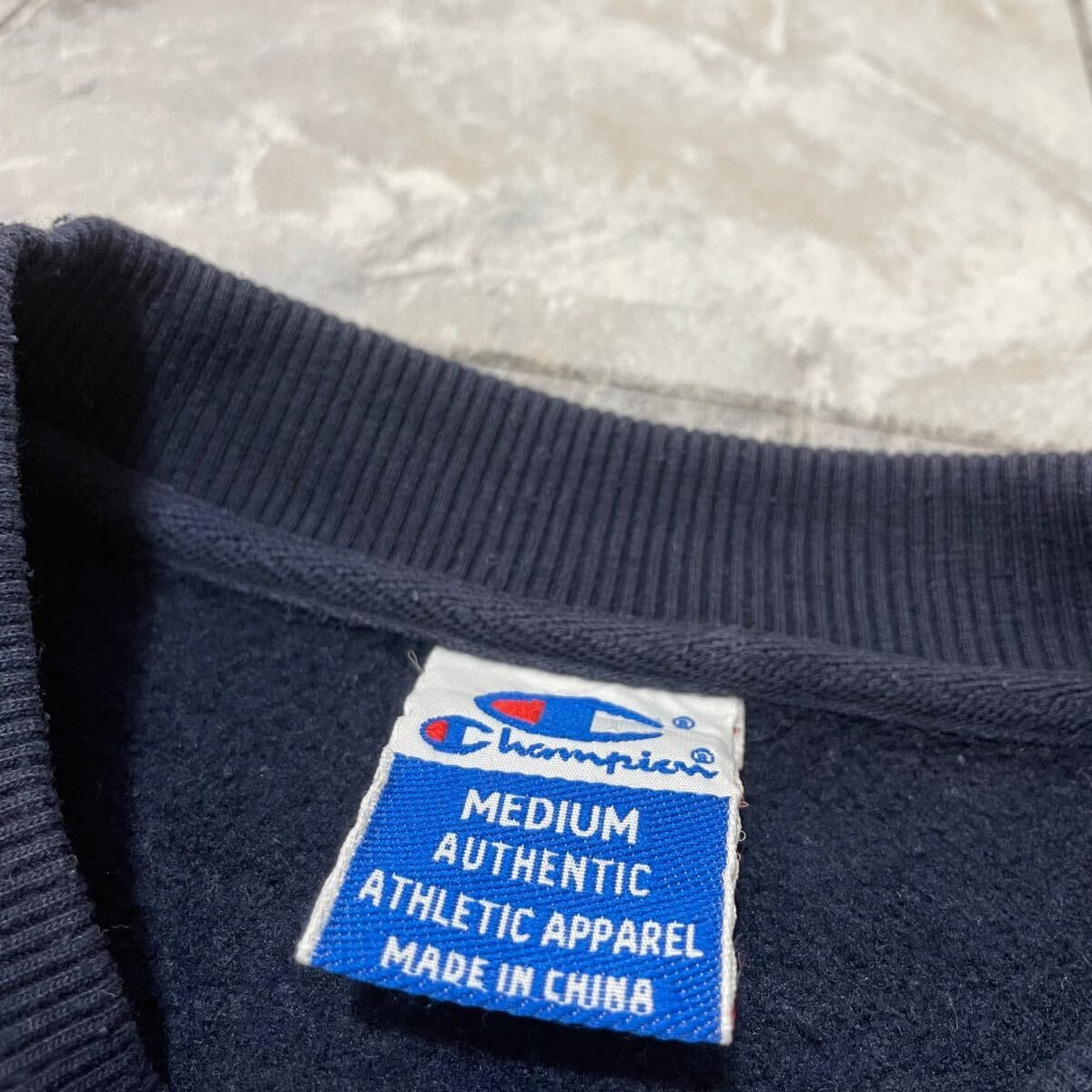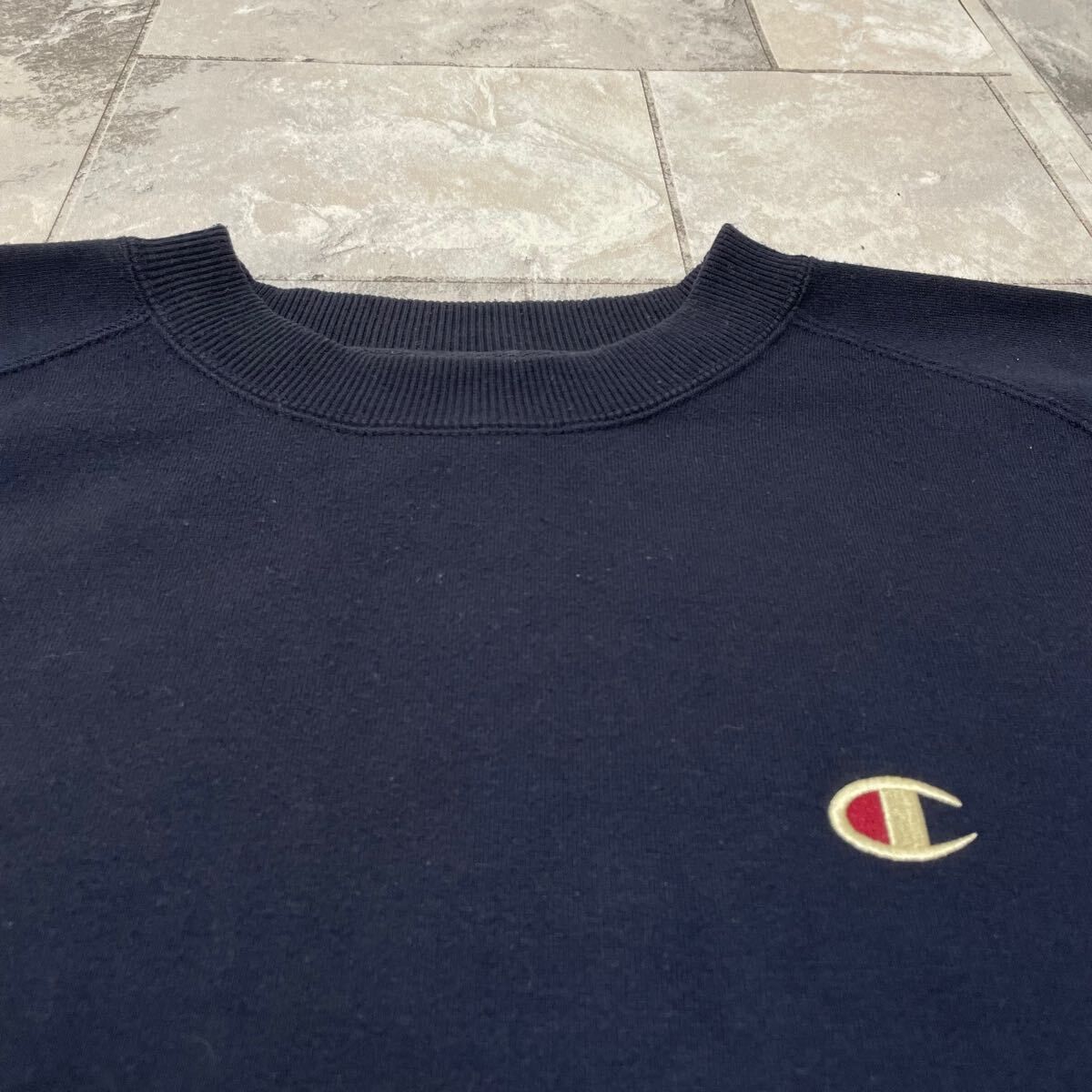 90s Champion チャンピオン sweat スウェット トレーナー 刺繍ロゴ 日本サラリー ヴィンテージ ネイビー サイズM 玉FL3887