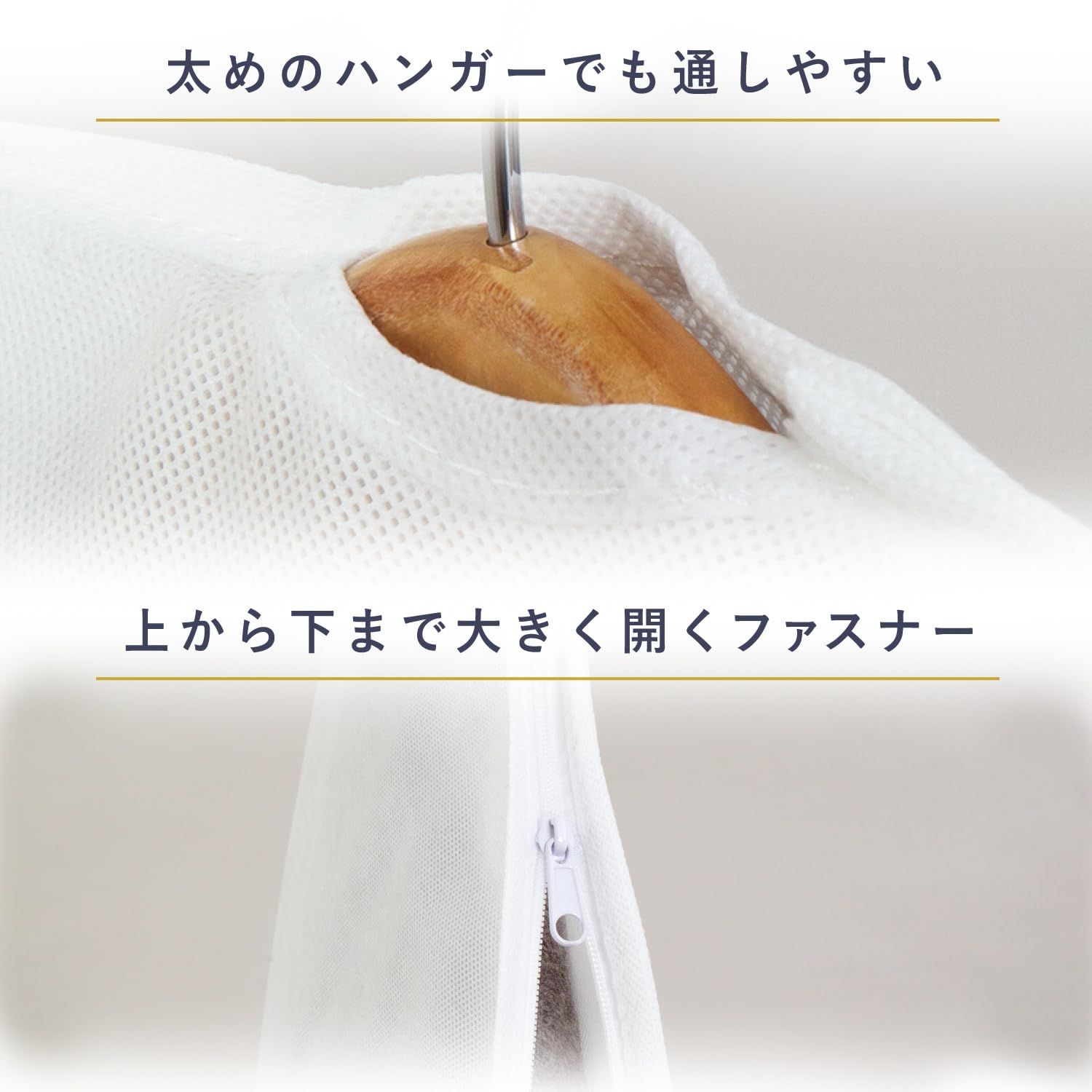 ●カバーを掛けておくことで保管中に洋服同士が擦れず、毛玉の発生や傷みを防げる。