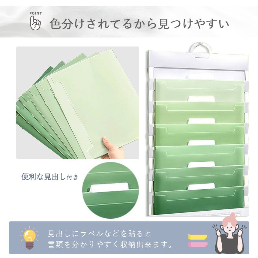 ●見やすく分けて、きれいに収納。A4対応6段ウォールポケットフォルダー●