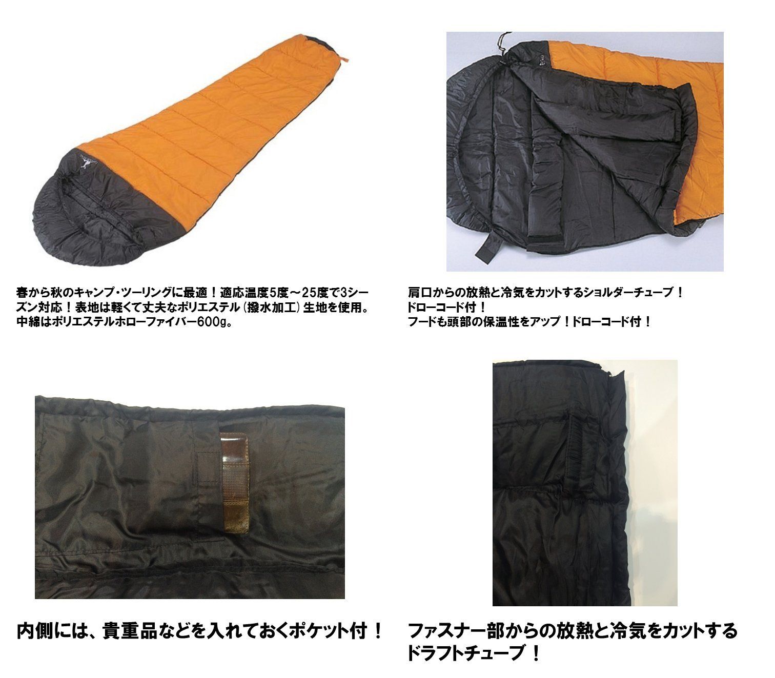 キャプテンスタッグ(CAPTAIN STAG) アクティブマミーシュラフ600 オレンジ[最低使用温度5度] M-3439 [スポーツ用品]