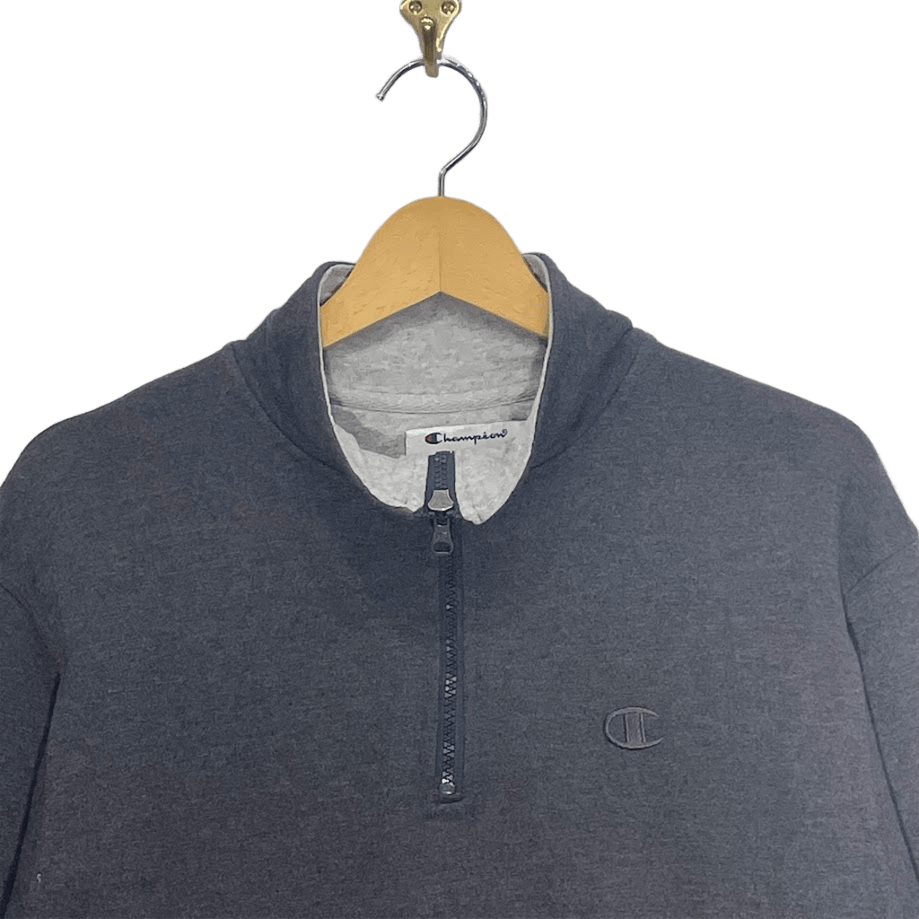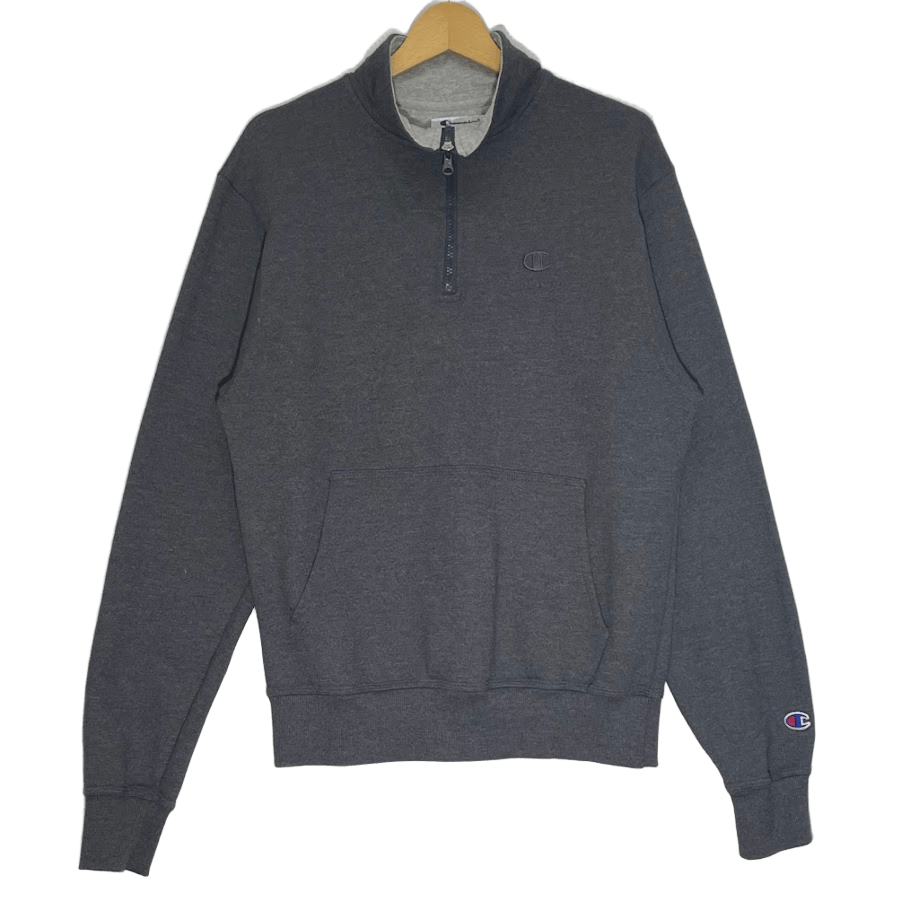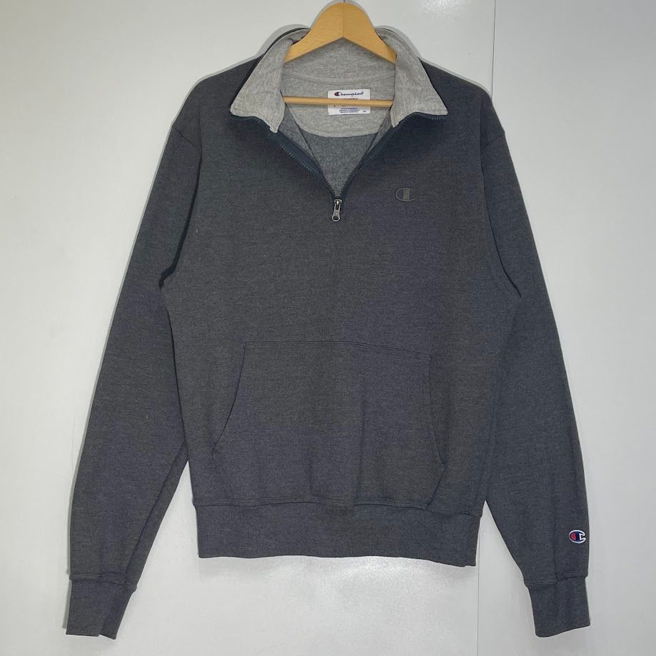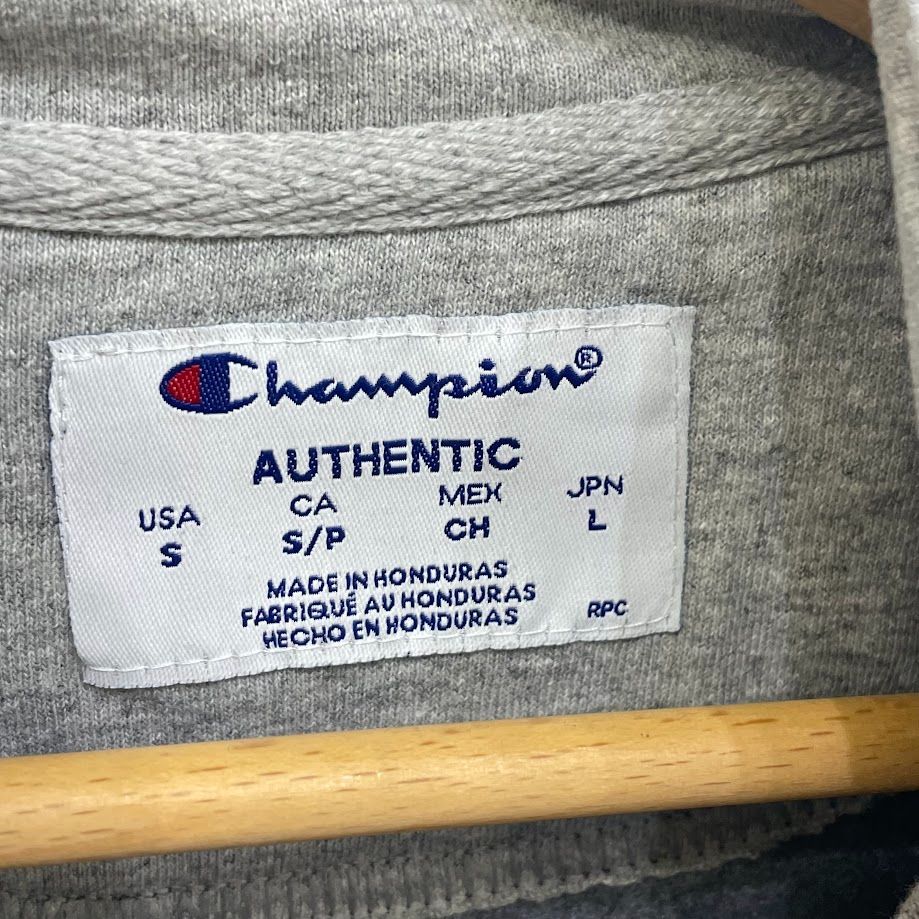 商品名:Champion チャンピオン ハーフジッププルオーバー AUTHETIC スウェット トレーナー 長袖 ワンポイント刺繡 ホンジュラス製 Sサイズ グレー