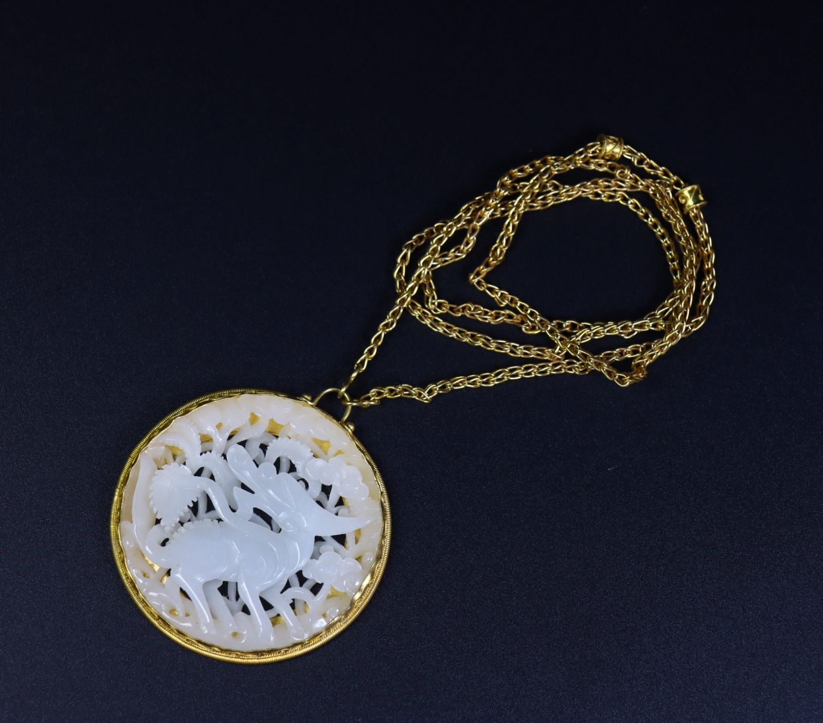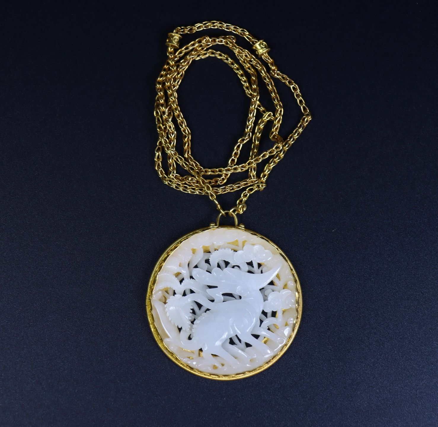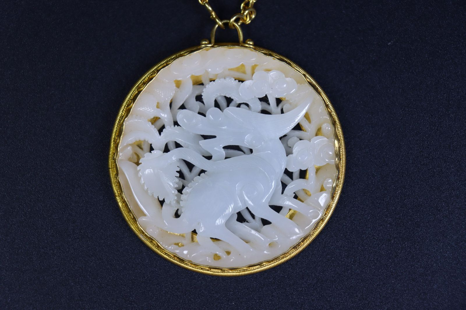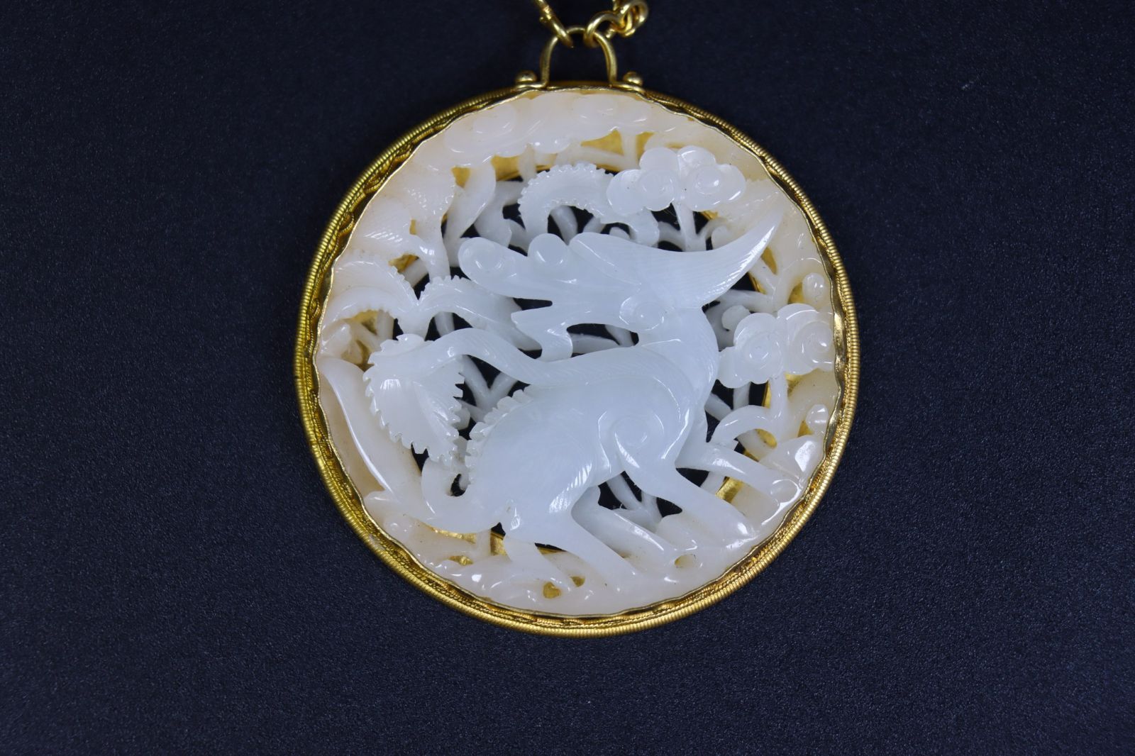 旧家蔵出し 和田玉細密彫 羊脂玉 透空彫 包銀 神獣紋 玉佩 ペンダント 古美術品 収集家