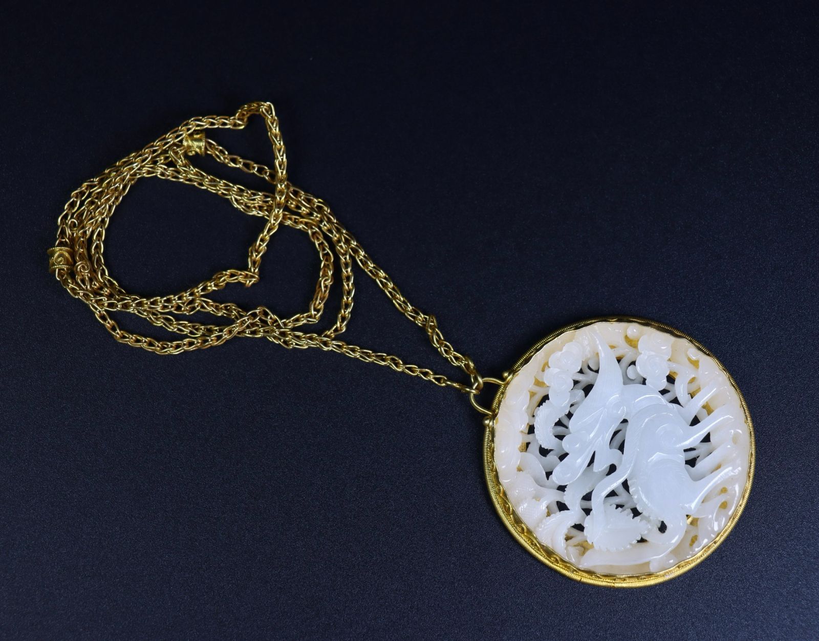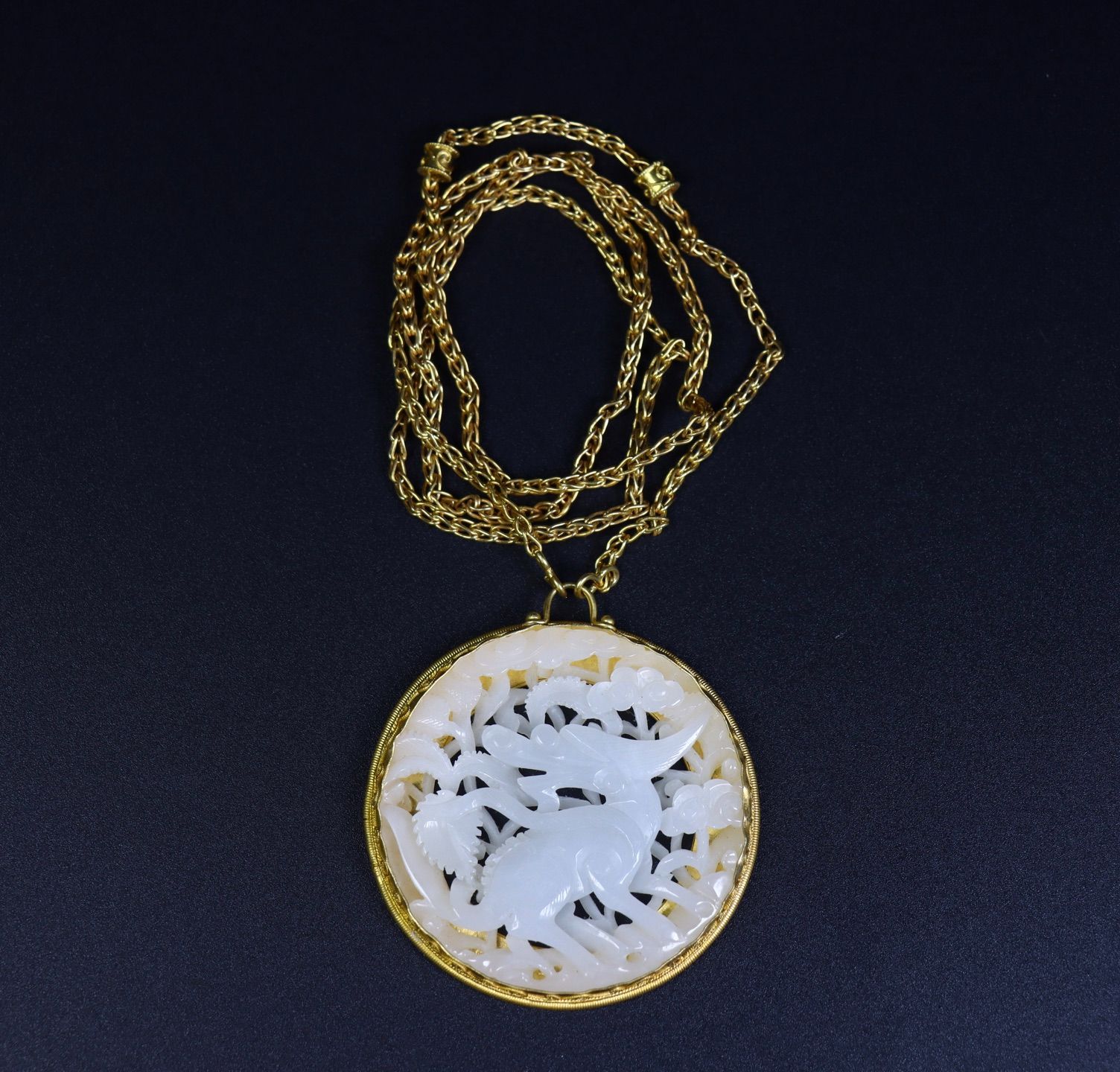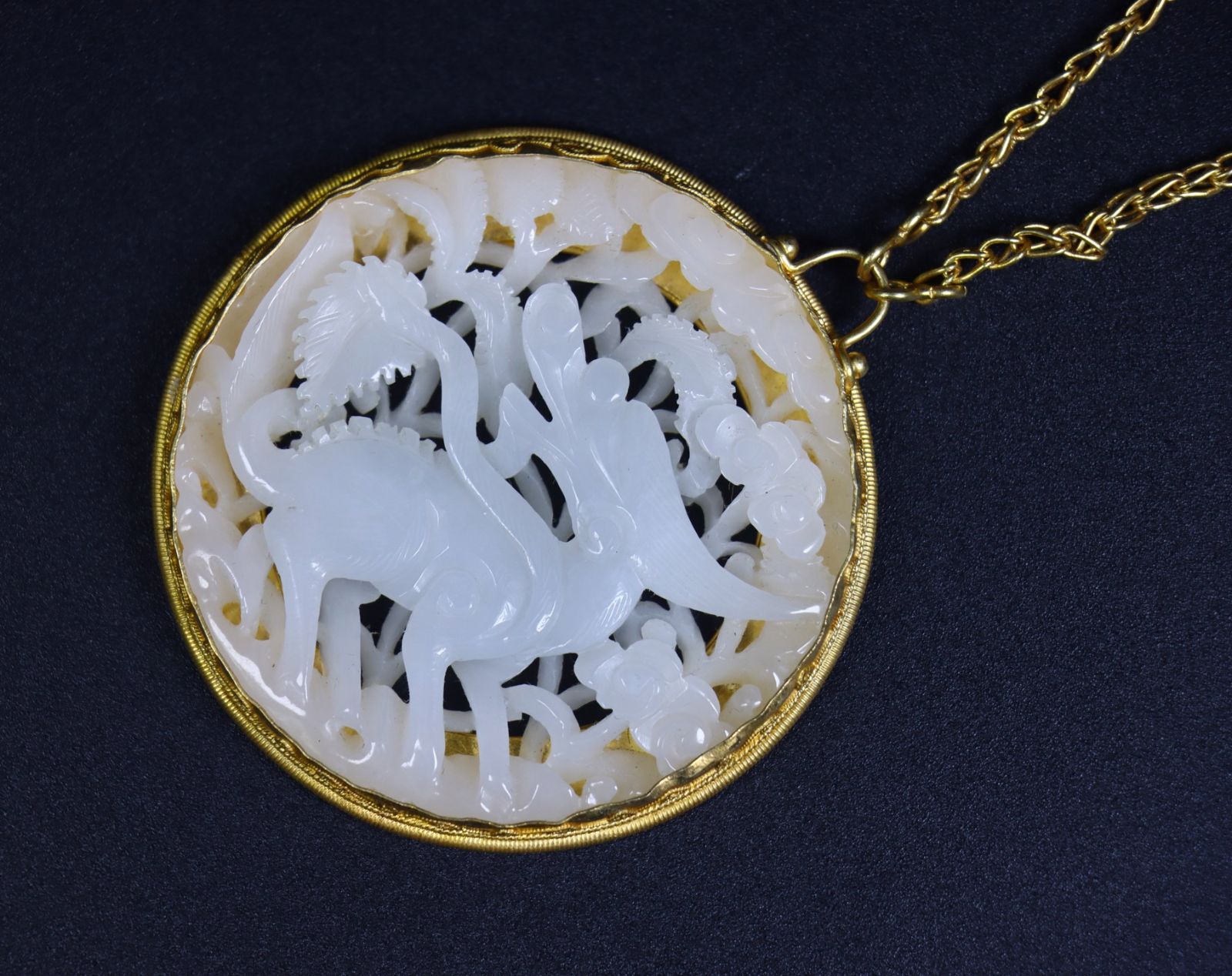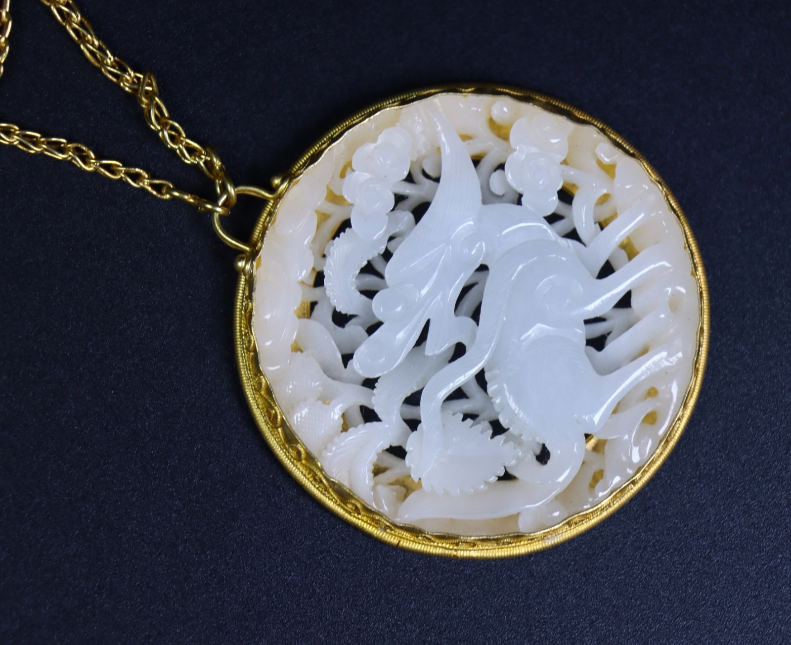 旧家蔵出し 和田玉細密彫 羊脂玉 透空彫 包銀 神獣紋 玉佩 ペンダント 古美術品 収集家