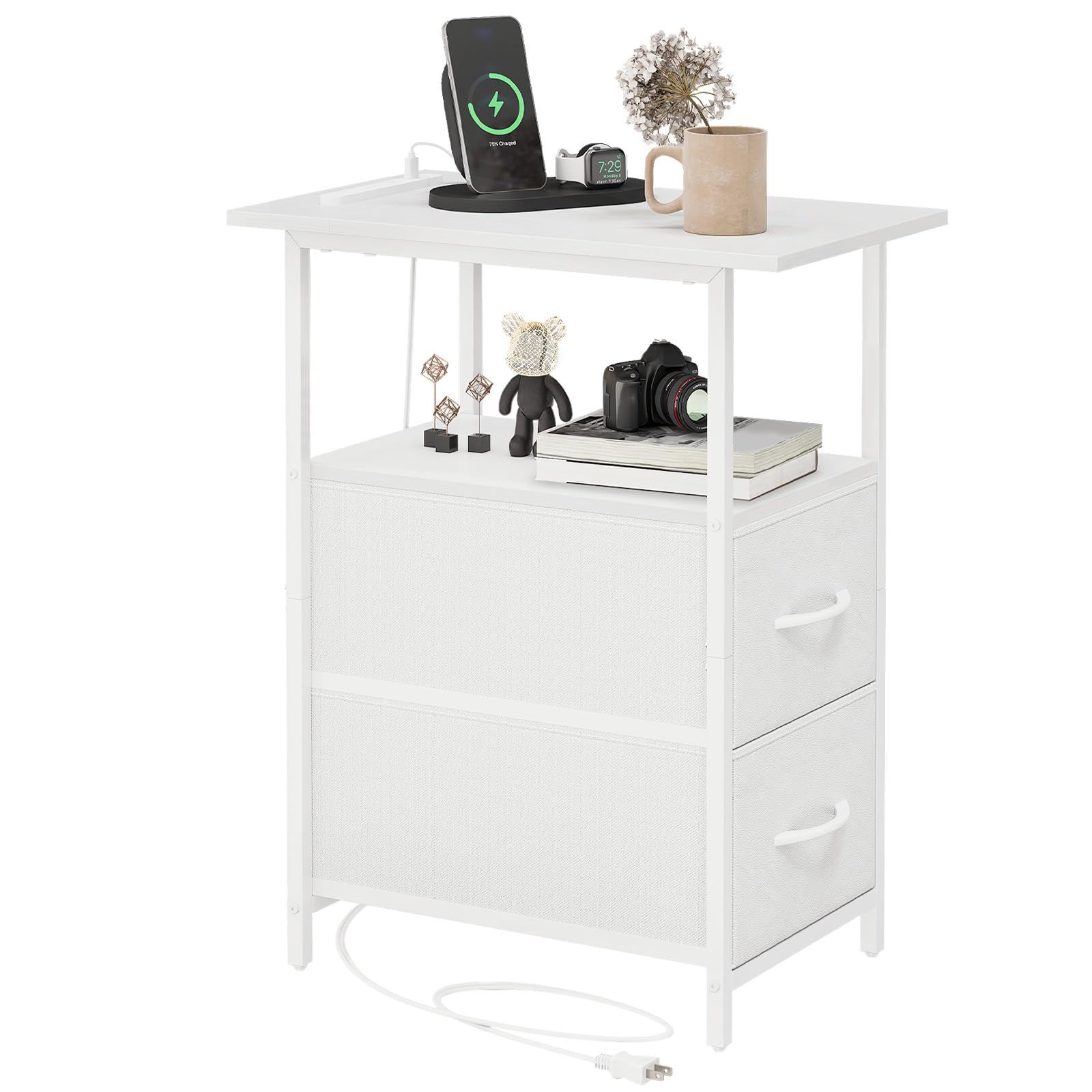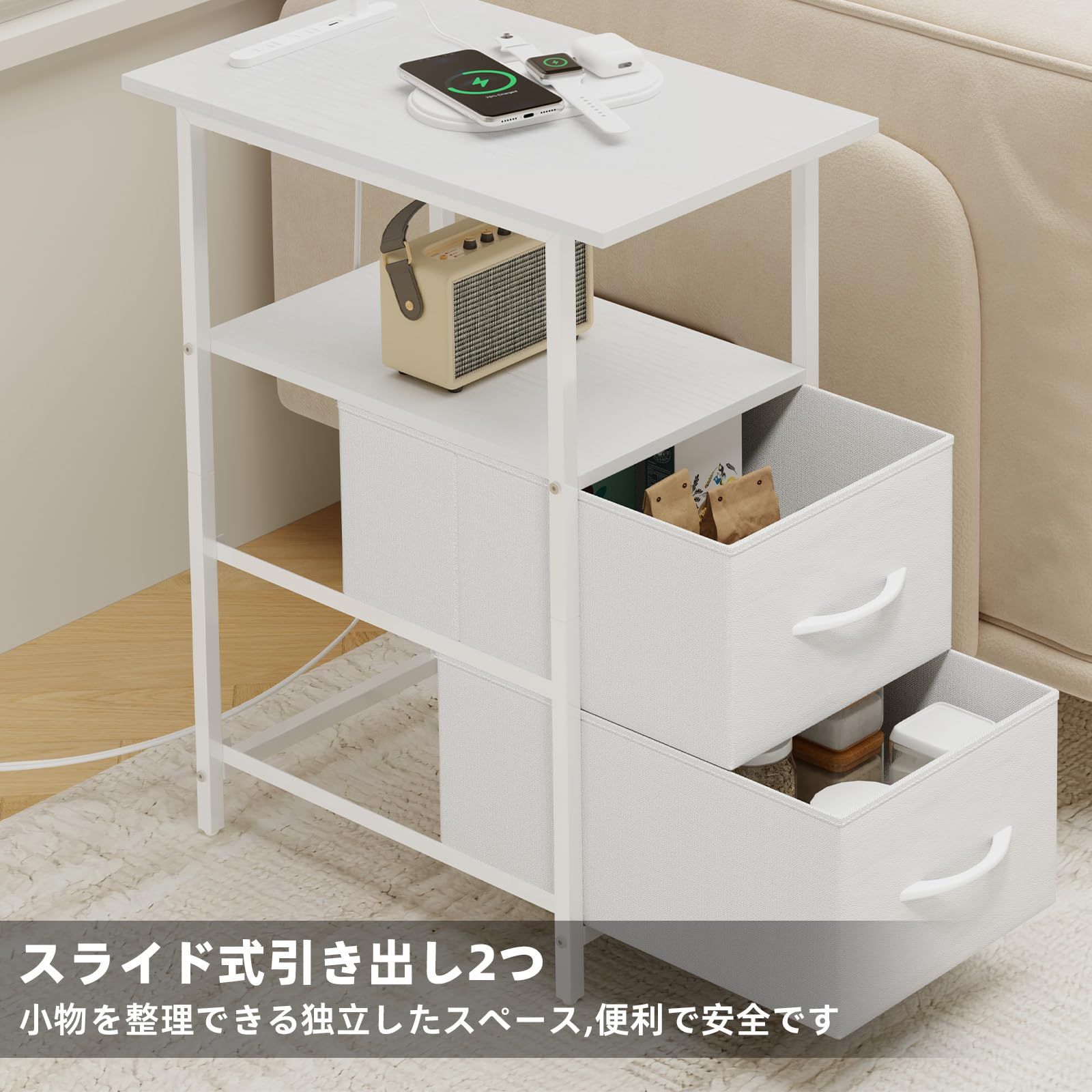 Somdot サイドテーブル 2つ引き出し付きのベッドサイド スリム ベッド横 ソファ おしゃれ リビング ベッドサイドテーブル 木目調 ナイトテーブル サイドワゴン コンパクト コーヒー 北欧 タンス ホワイト