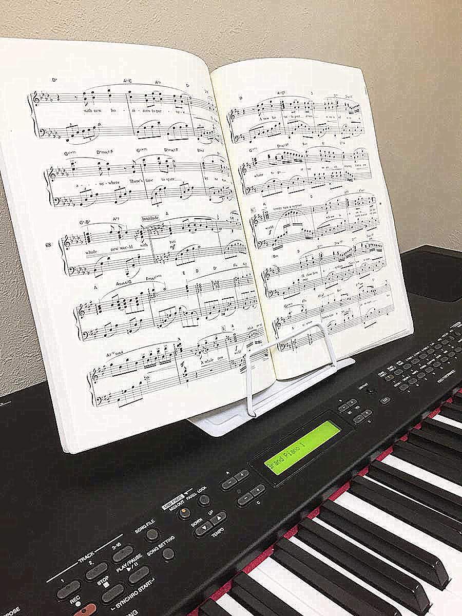 かわいい音符とピアノをモチーフにデザインされた譜面台(書見台としてももちろん利用可能です。)シンプル、どんなお部屋にもマッチ!