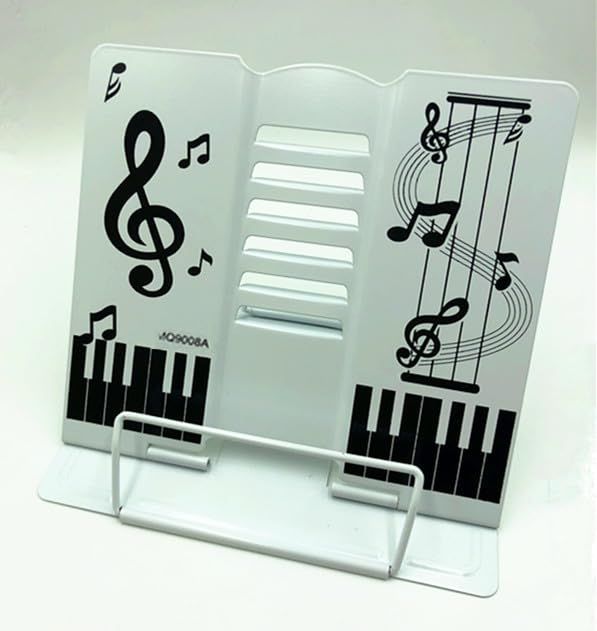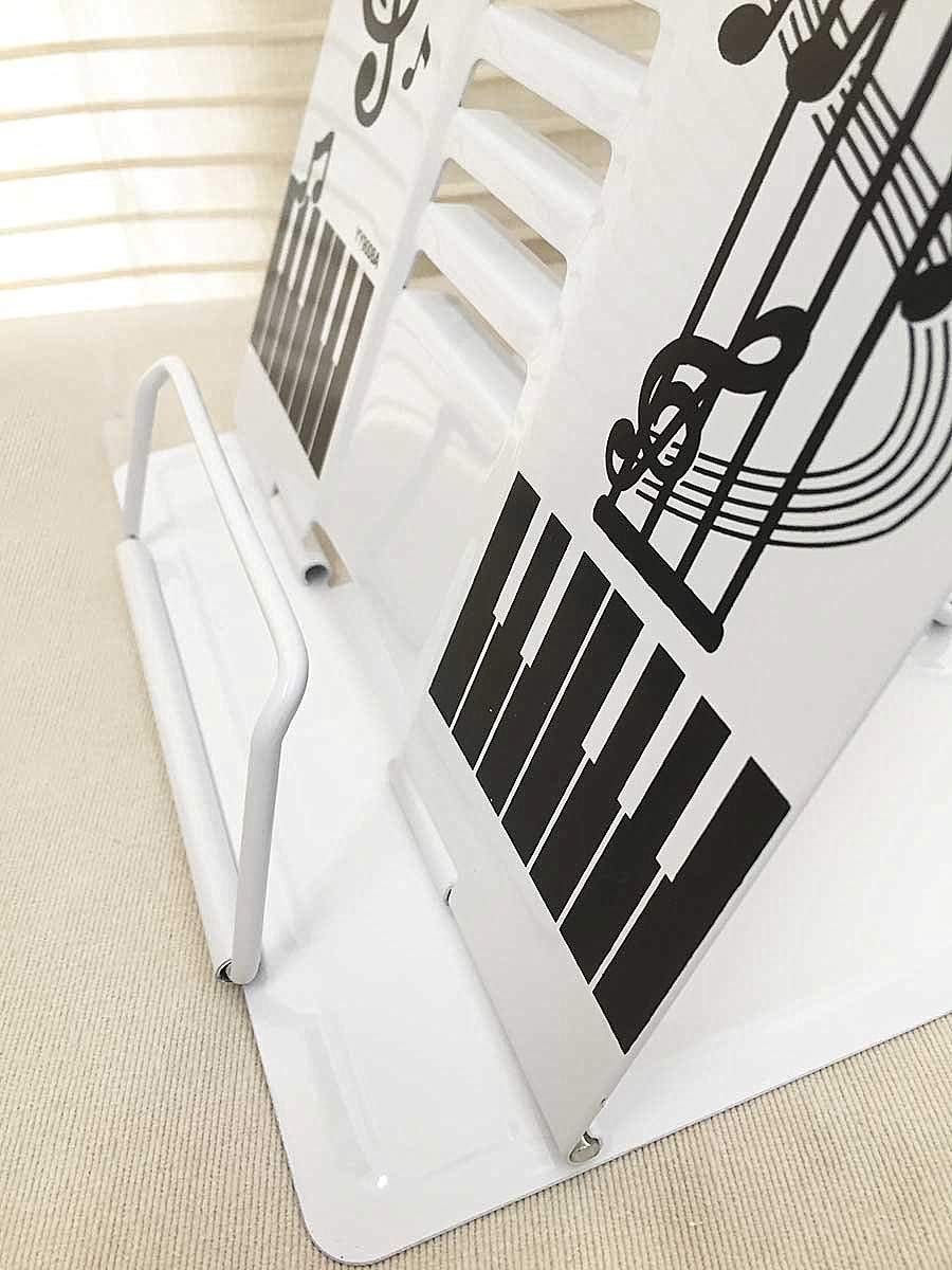 かわいい音符とピアノをモチーフにデザインされた譜面台(書見台としてももちろん利用可能です。)シンプル、どんなお部屋にもマッチ! 毎日のピアノのレッスンが、楽しく練習できそうな可愛い譜面台です。卓上で、持ち運びもできる折りたたみでコンパクトになります。 スタンドの角度は調節可能なので 読書や勉強にも集中して頂く事はもちろん、調節方法も便利でしやすいです。 重さのあるの本を支えるのに、机と接触する面積が大きくになって、重い本を置いても倒れにくい設計 サイズ: (約)208mm×164mm×189mm 重さ:約510g