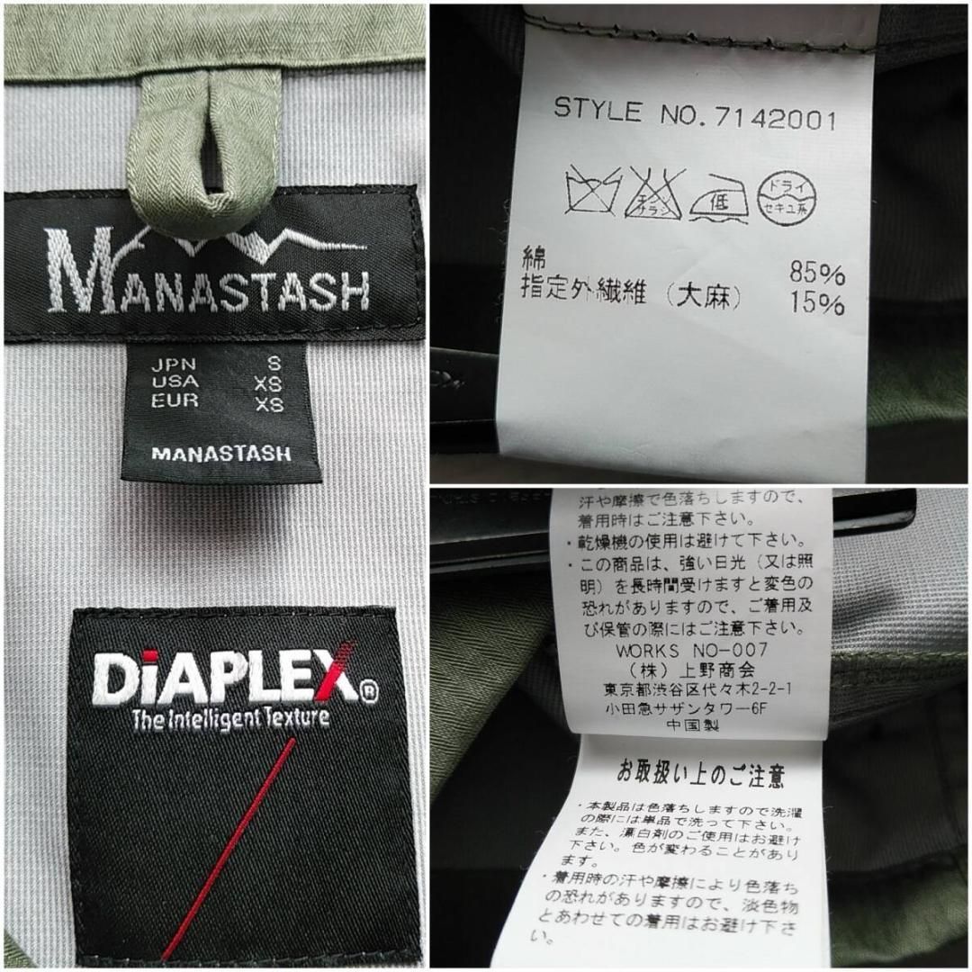 MANASTASH ヘンプ ジャケット オリーブグリーン 大麻 メンズS 7142001 DIAPLEX 上野商会 240809-04