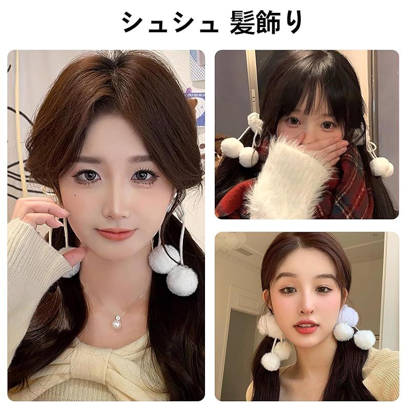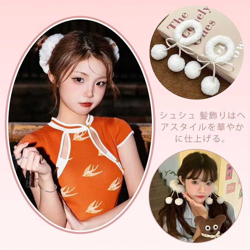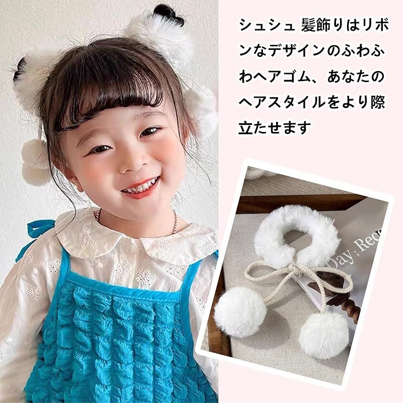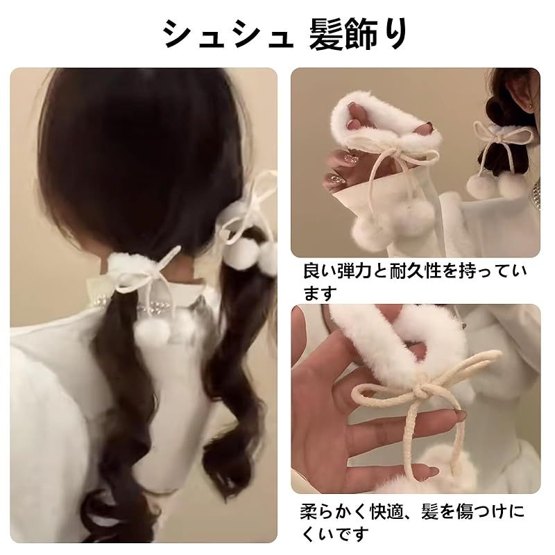 【シュシュ 髪飾り】シュシュ 髪飾りはリボンなデザインのふわふわヘアゴム、あなたのヘアスタイルをより際立たせます。 秋冬の装いにぴったりなファー付きでおしゃれなデザインです、髪を簡単に束ねることができます。