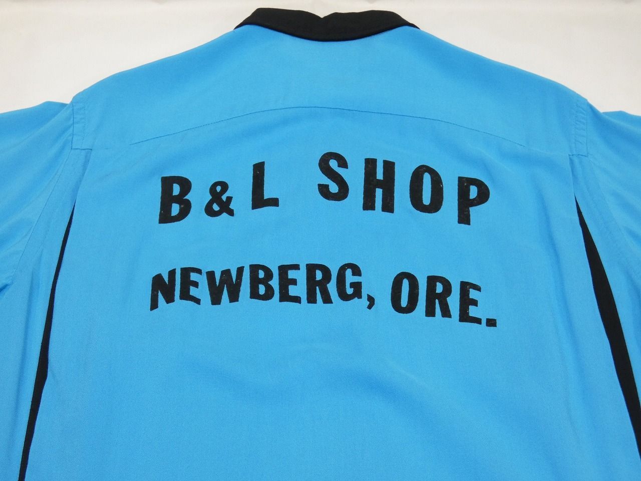 ボーリングシャツの名門ブランドHiltonの1枚です。ターコイズ×ブラックのツートン仕様で、襟はステッチと襟芯の入るオープンカラー、左ポケット上には所有者だった方のネーム刺繍、背中にはB&L SHOP NEWBERG OREのフロッキープリントが入ります。お好きな方は是非、ご検討下さい。
