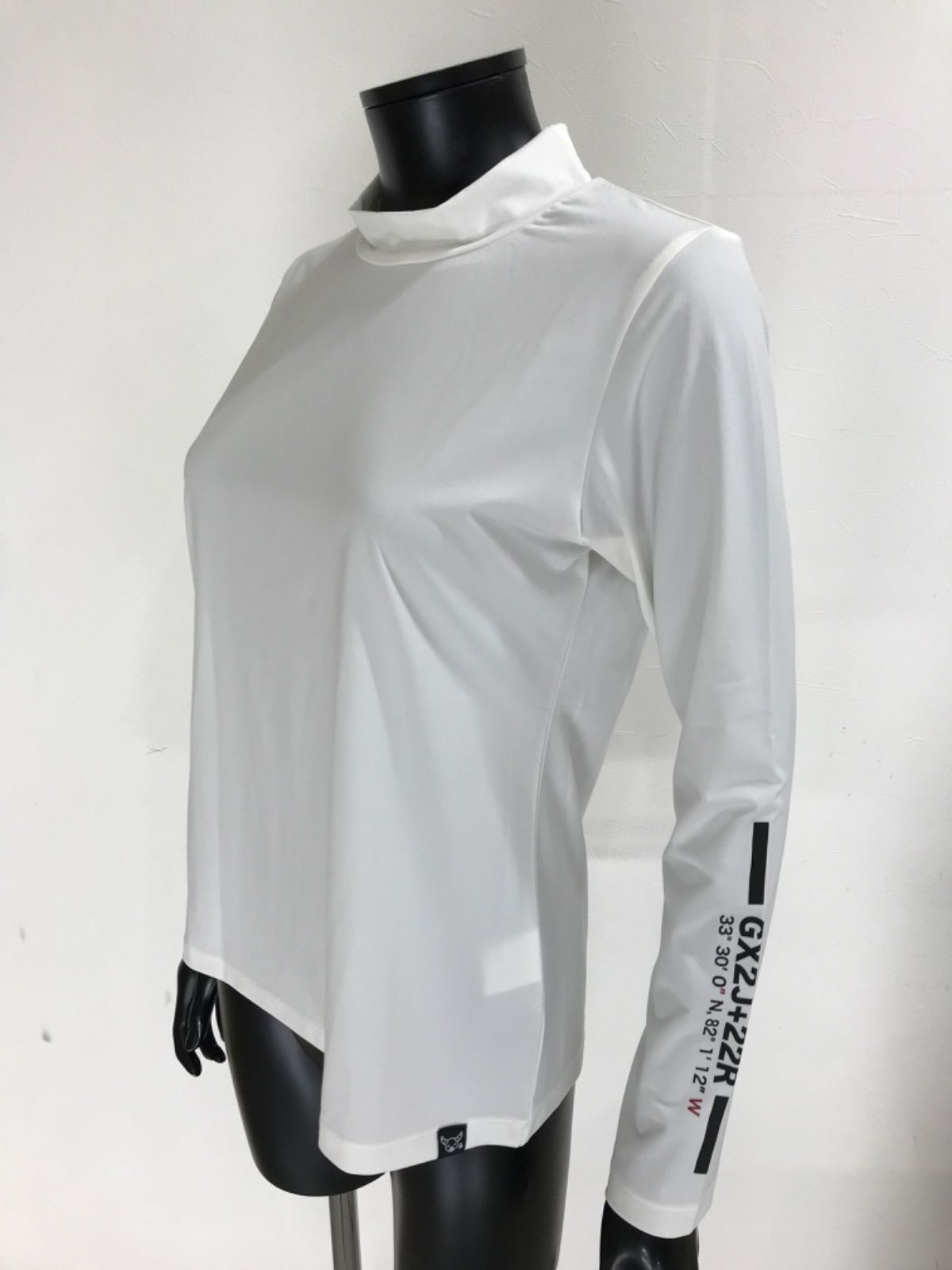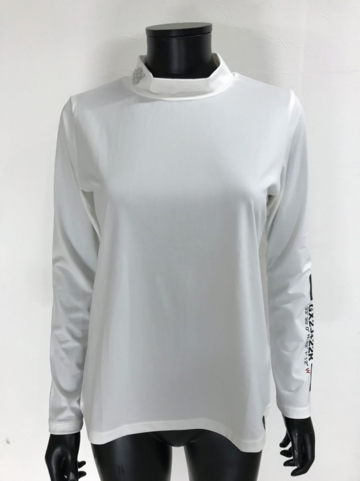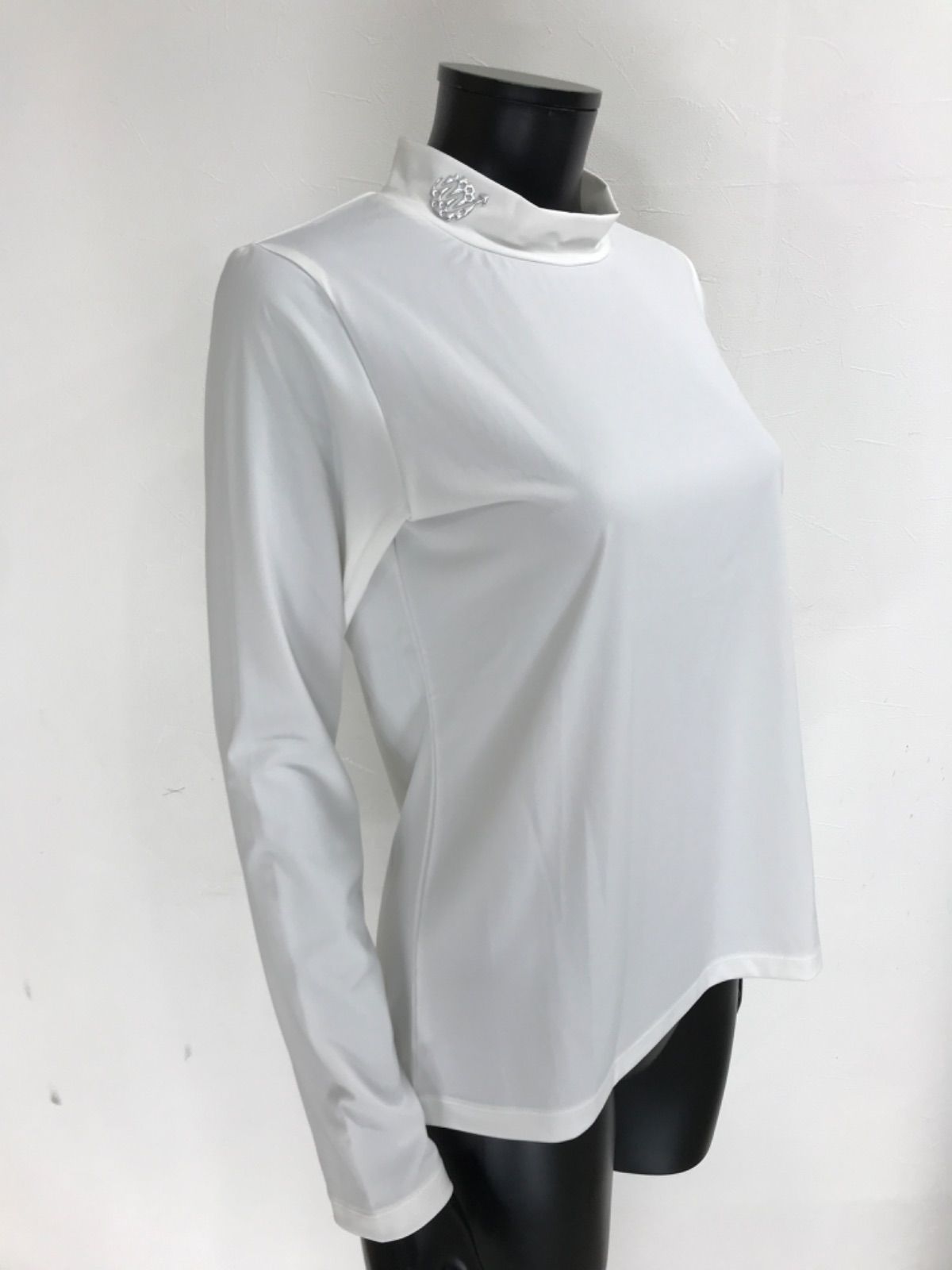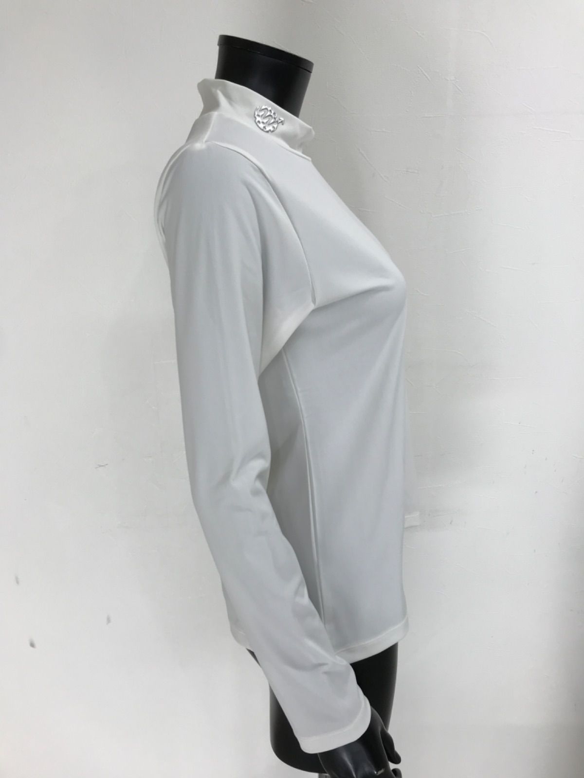 【USED】Bull&Bull ブルアンドブル ポリエステル ストレッチ ハイネック 長袖 シャツ ホワイト 白 レディース L ゴルフウェア