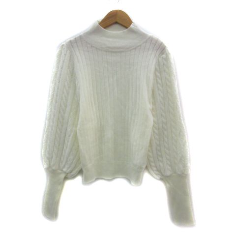 【商品名】アンドクチュール And Couture リブニット カットソー 長袖 ボトルネック 切替 ケーブル編み 38 M オフホワイト /YS10