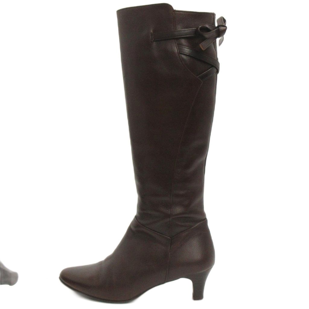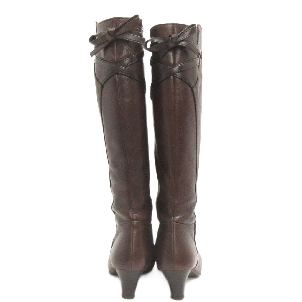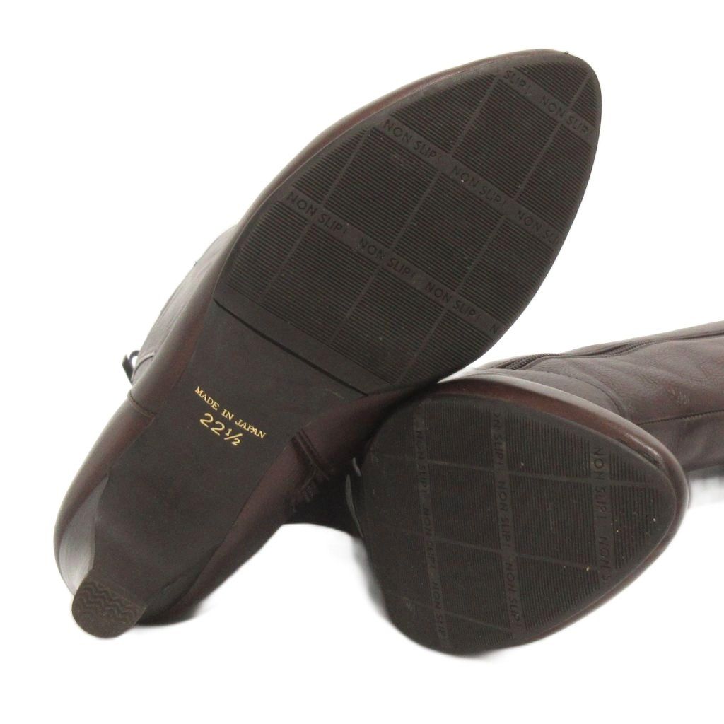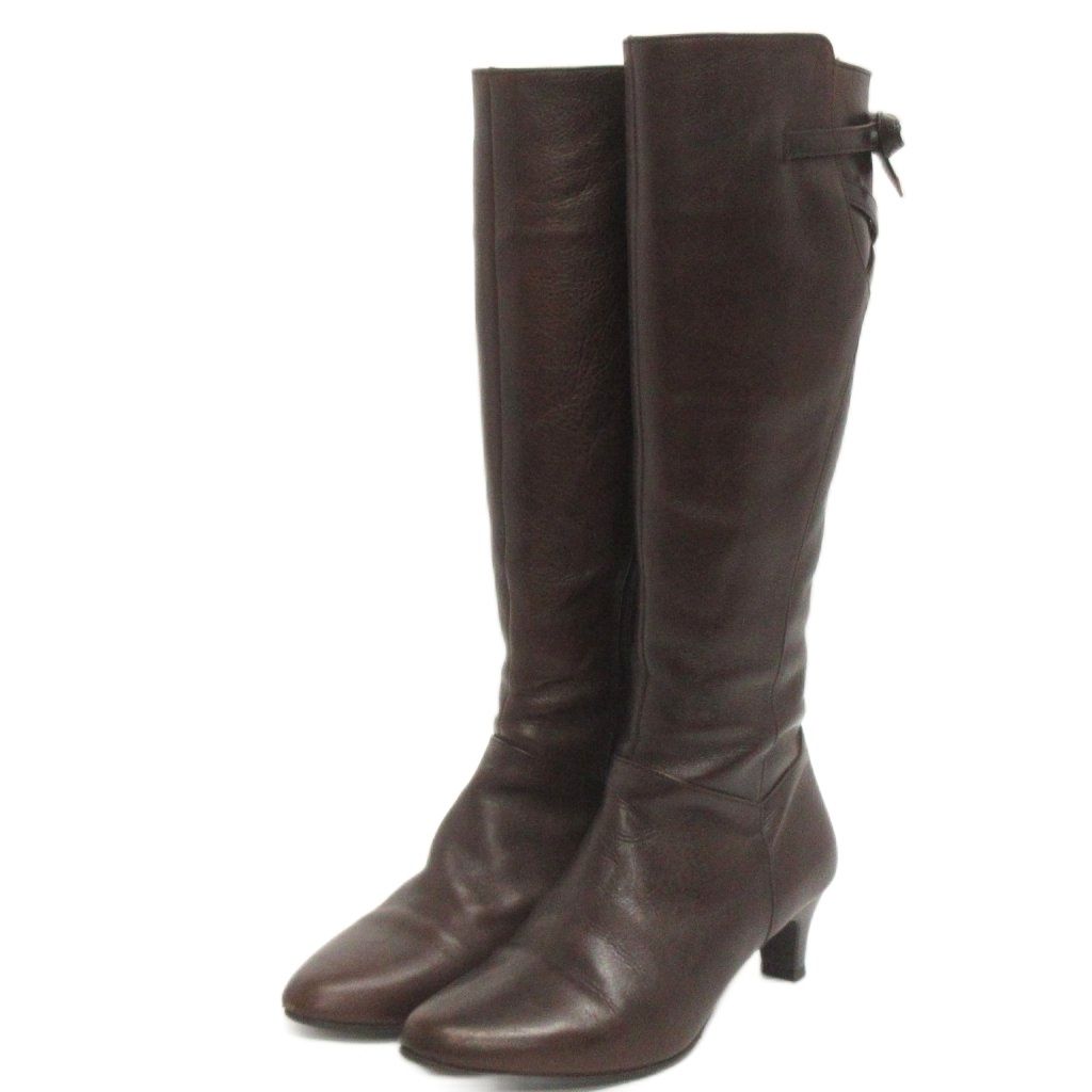 【商品名】美品 ルージュヌール rougenheur ロング ブーツ サイドジップ レースアップ ヒール レザー 茶 ブラウン 22.5㎝ ■FF