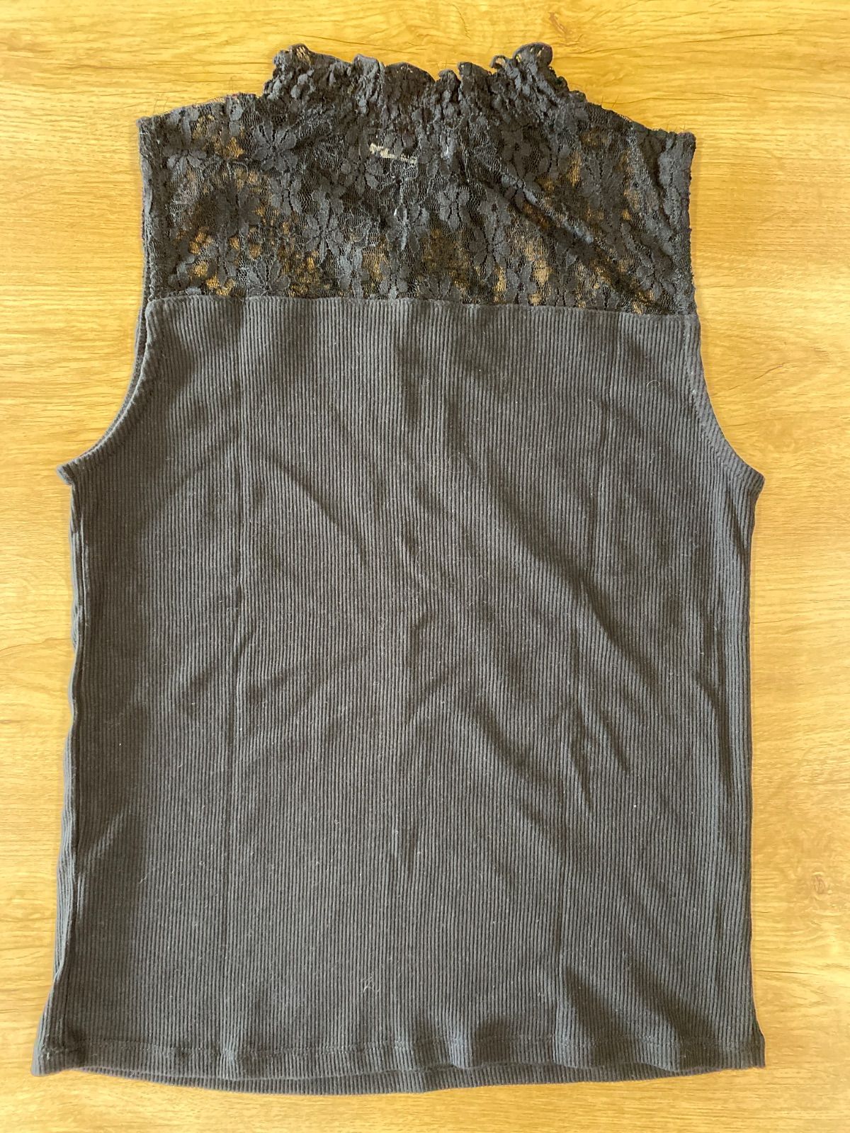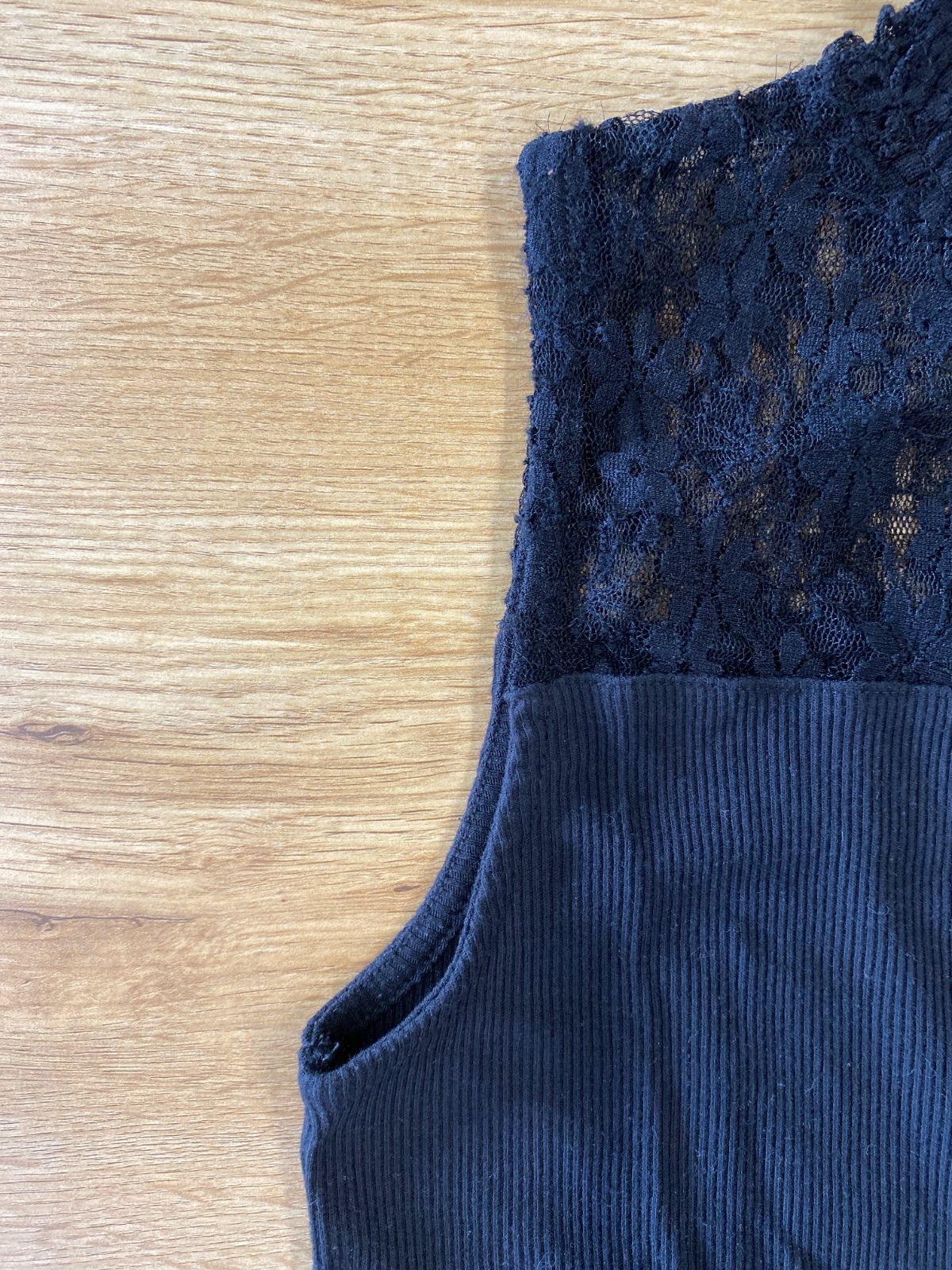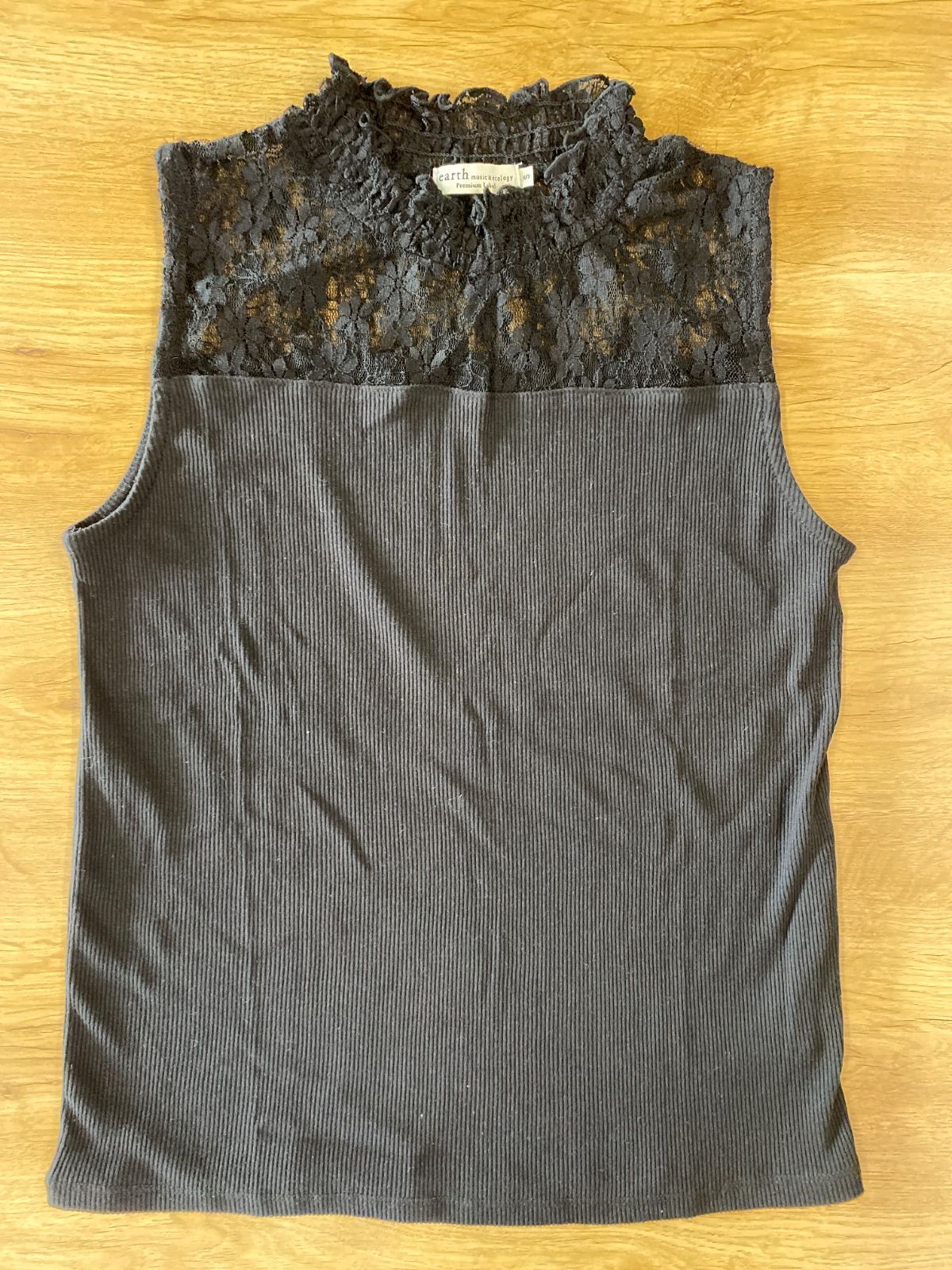 a662⚫︎earth music&ecology⚫︎アースミュージック&エコロジー⚫︎レース⚫︎切替⚫︎ノースリーブ⚫︎カットソー⚫︎sizeS⚫︎黒