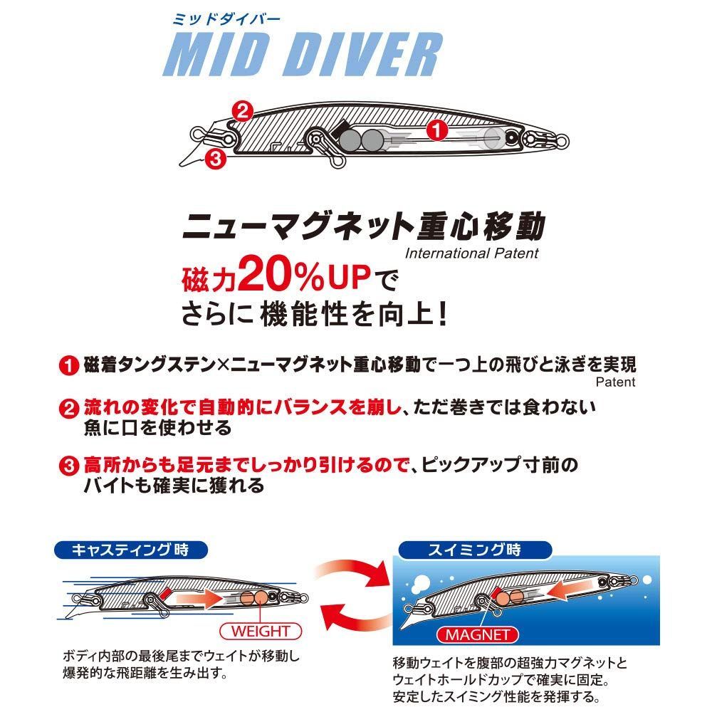 デュエル(DUEL) ハードコア ミッドダイバー (F) リップレスミノー (ヒラスズキ・シーバス) 95115mm 1418g 磁着タングステン×マグネット重心移動 遠投ルアー フローティング