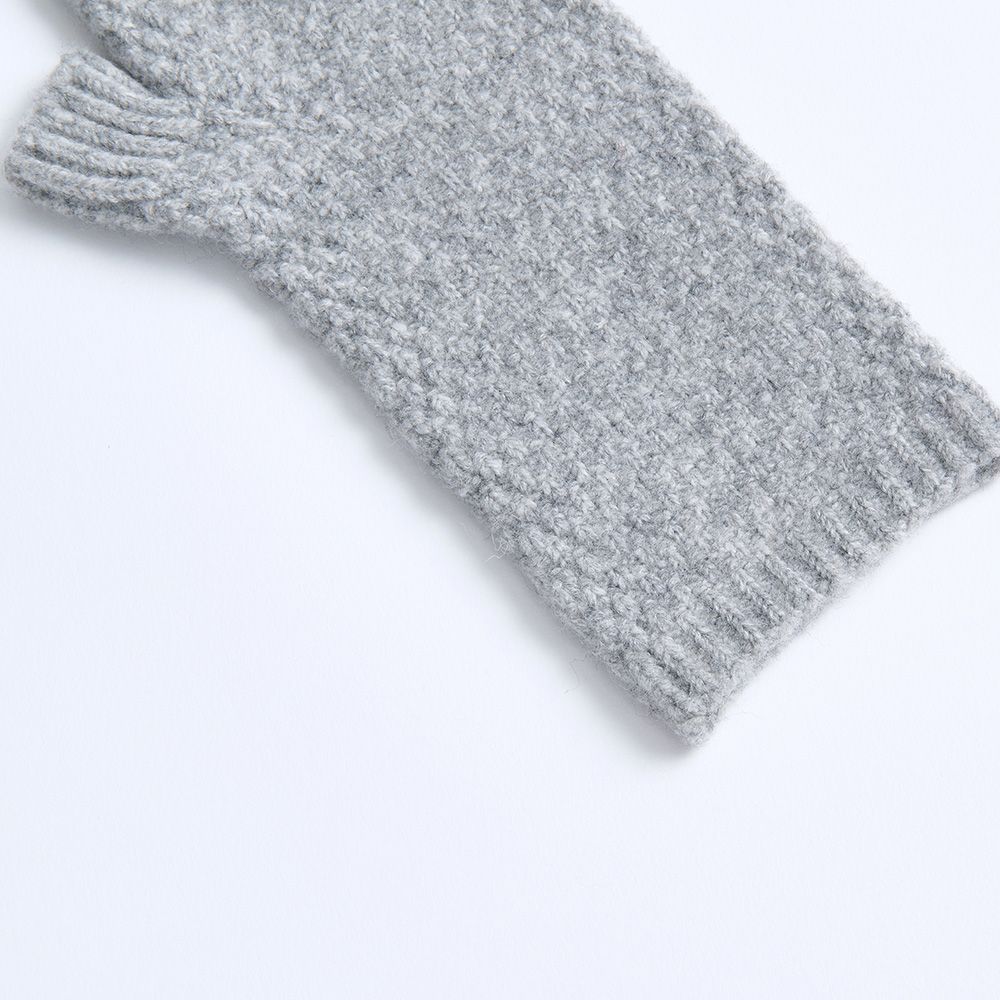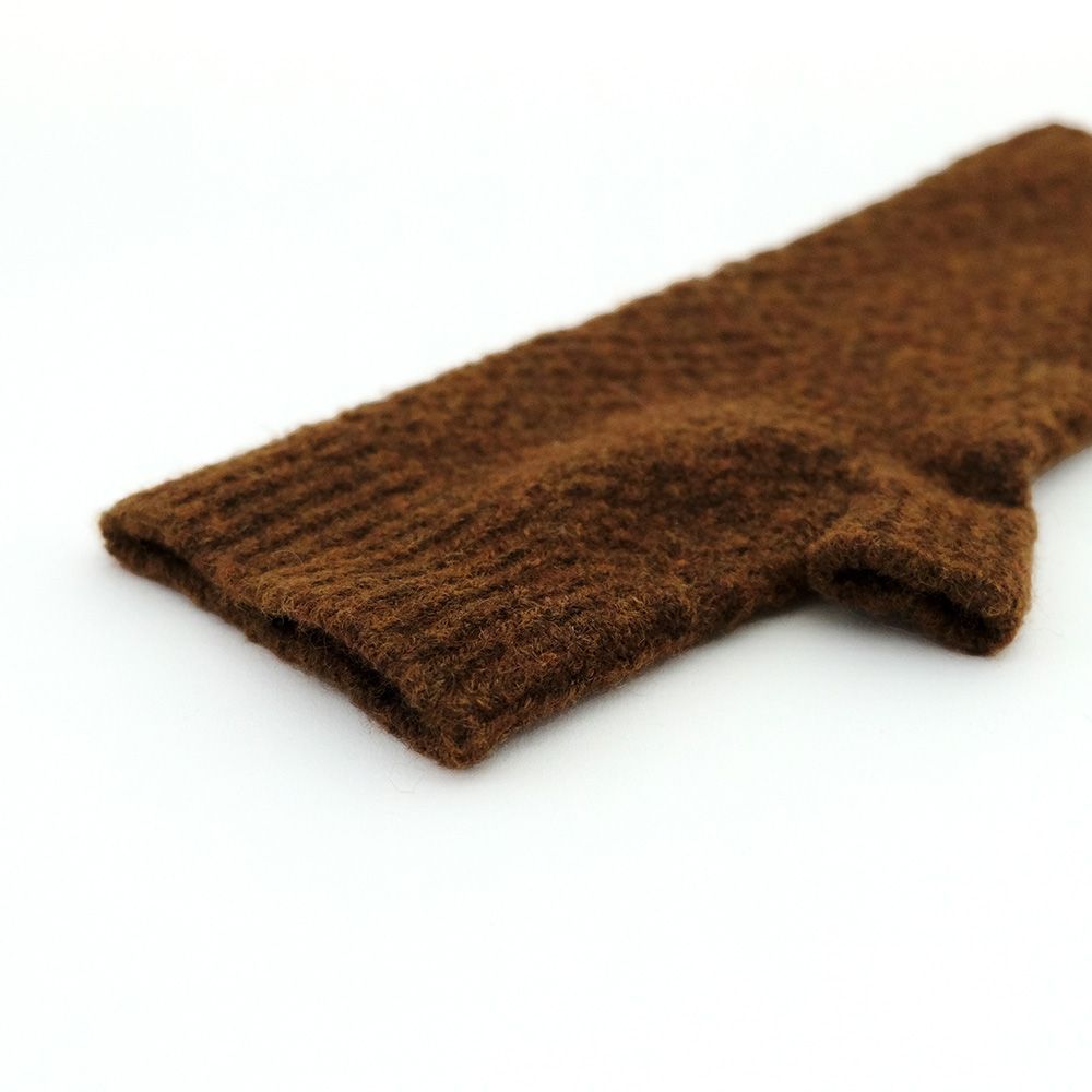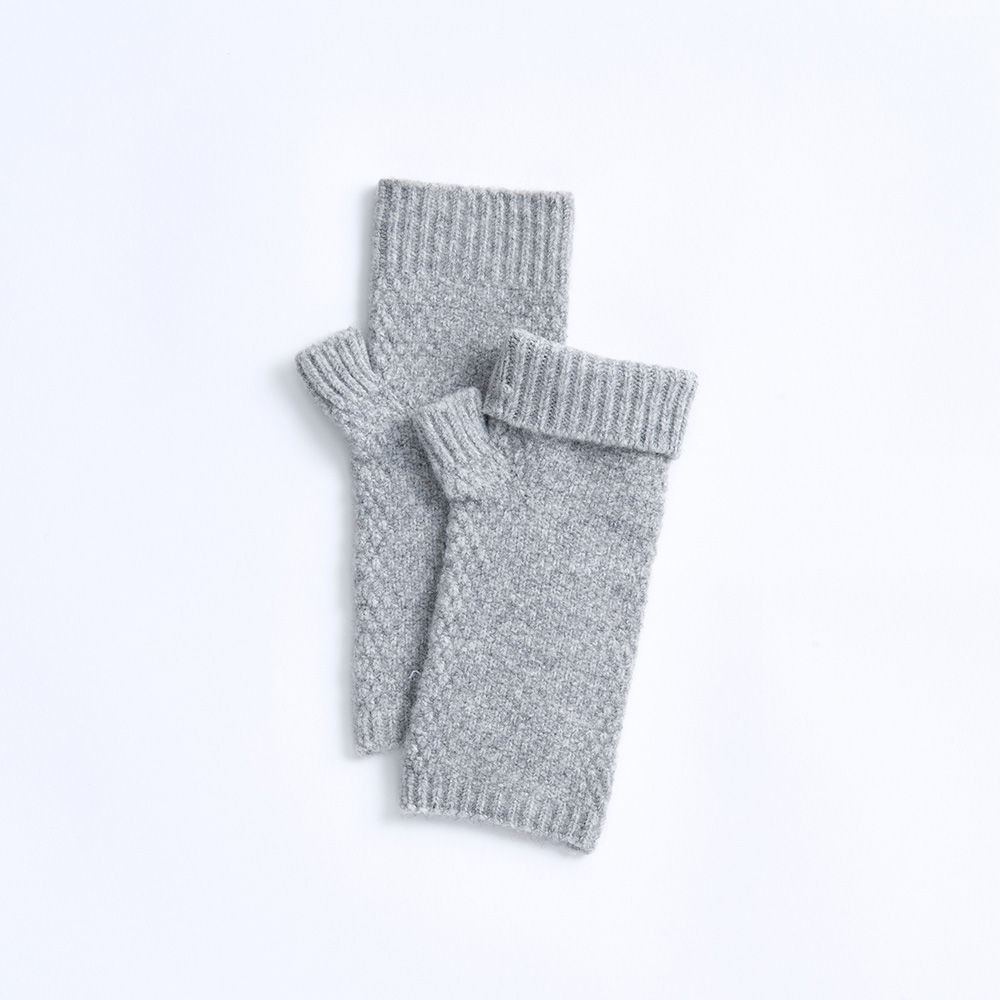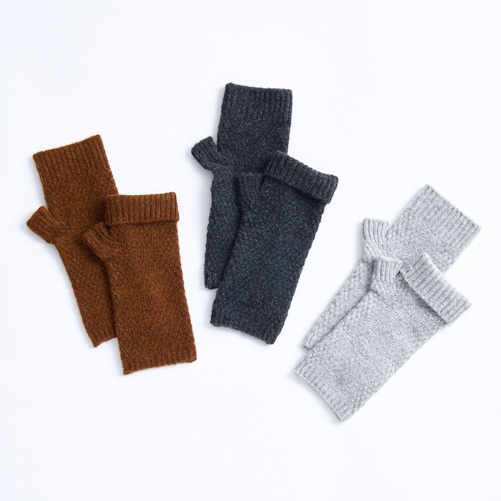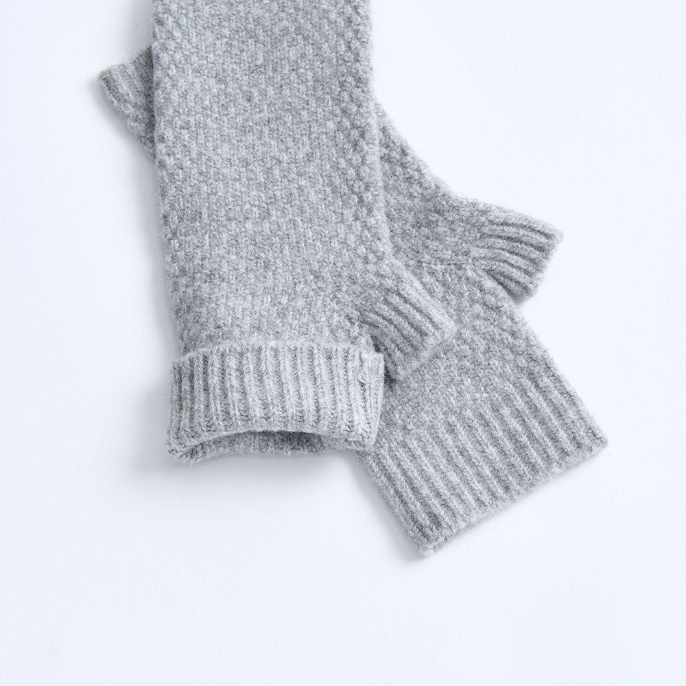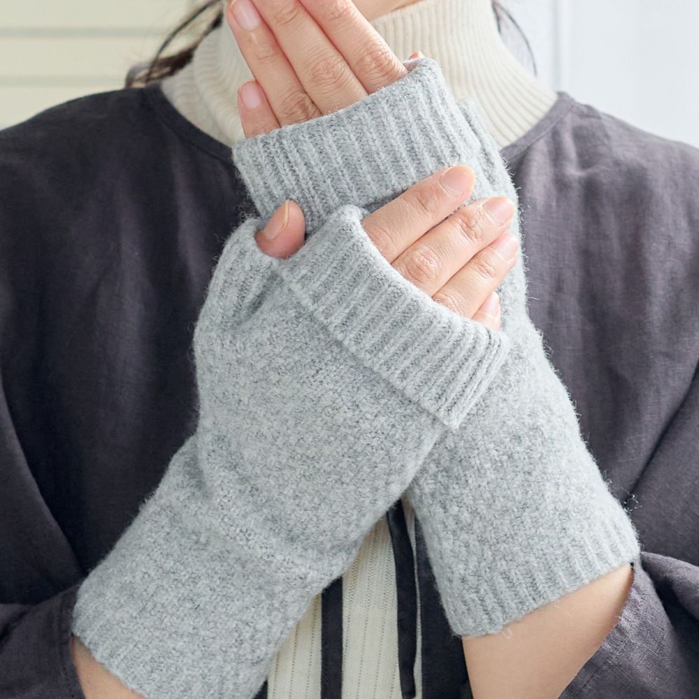 鹿の子編みのアレンジでさらりとした風合いに仕上げたアームウォーマー。優しくフィットする快適な着け心地と、指先の長めリブが特徴。折り返してアレンジすることで、自分好みのスタイルを楽しめます。デザイン性と機能性を兼ね備えた、心地よい肌触りの一品です。