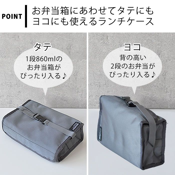 スクエアランチ1段860やスリムタイプの2段ランチボックスが入る2WAYで使えるランチケースです。 裏地はシルバーコーティング素材を使用し、汁もれなどの汚れもふき取りやすく、お手入れ簡単です♪