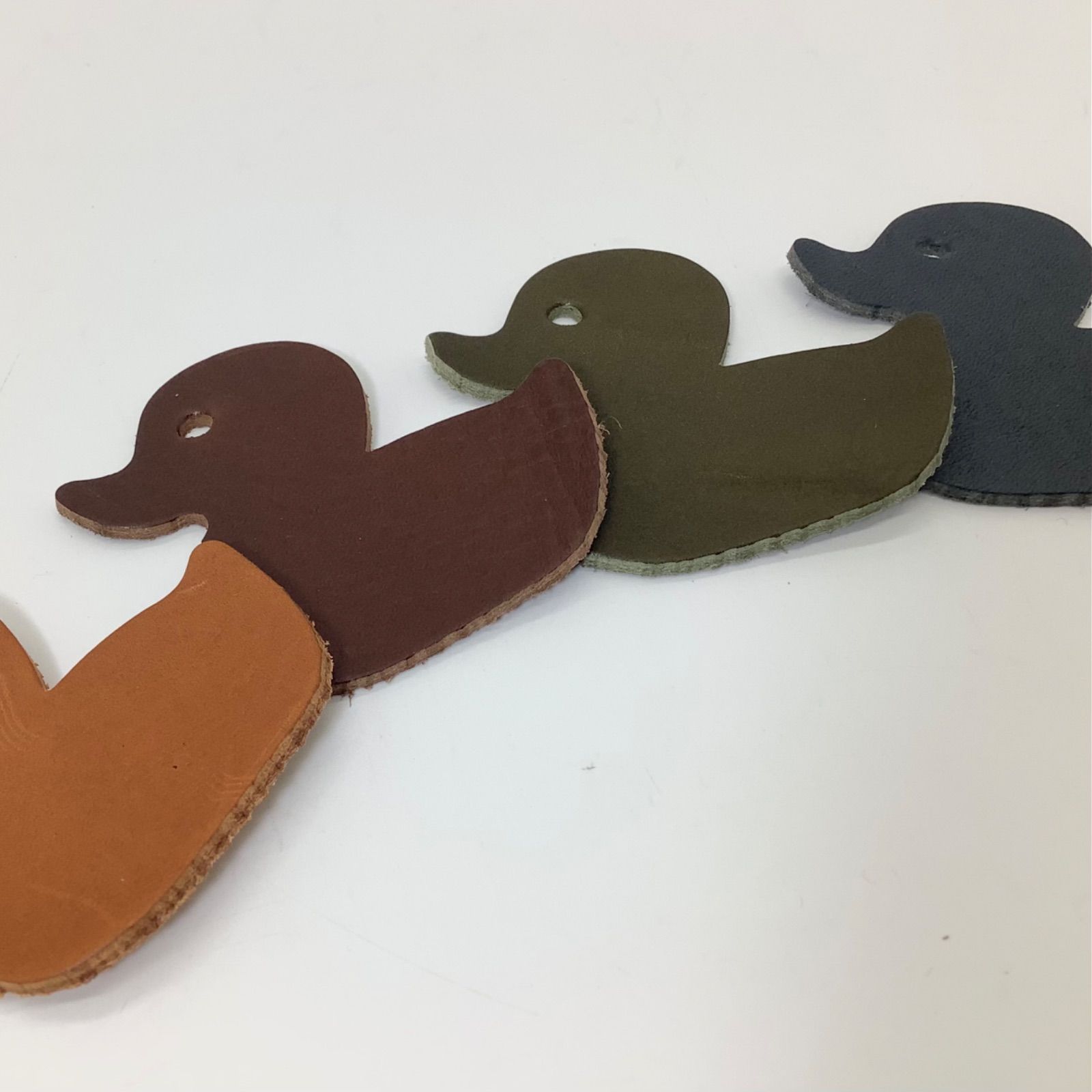 革の端切れを活用して、型抜きしたレザーチャーム12枚セット【アヒル】です。