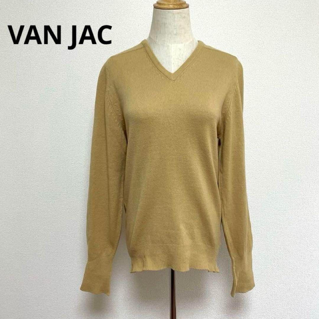 VAN JAC ヴァンヂャケット ベージュ Vネック 長袖 ニット セーター M ウール混