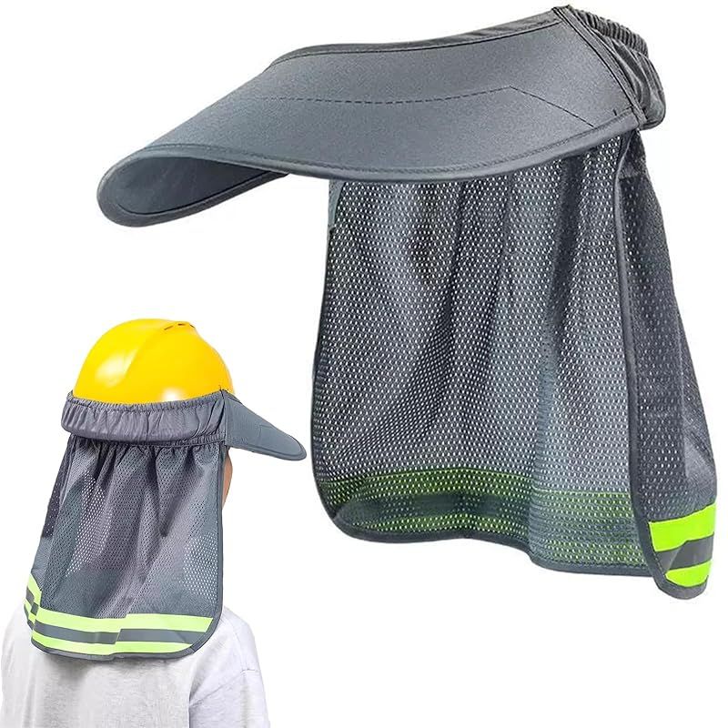 【ヘルメット日除け】広いつば+ネックメッシュショールのデザインで、顔と首を同時に日差しから遮ることができ、紫外線を遮断します。建設、農業、園芸などの屋外作業はもう日焼けの恐れがありません。