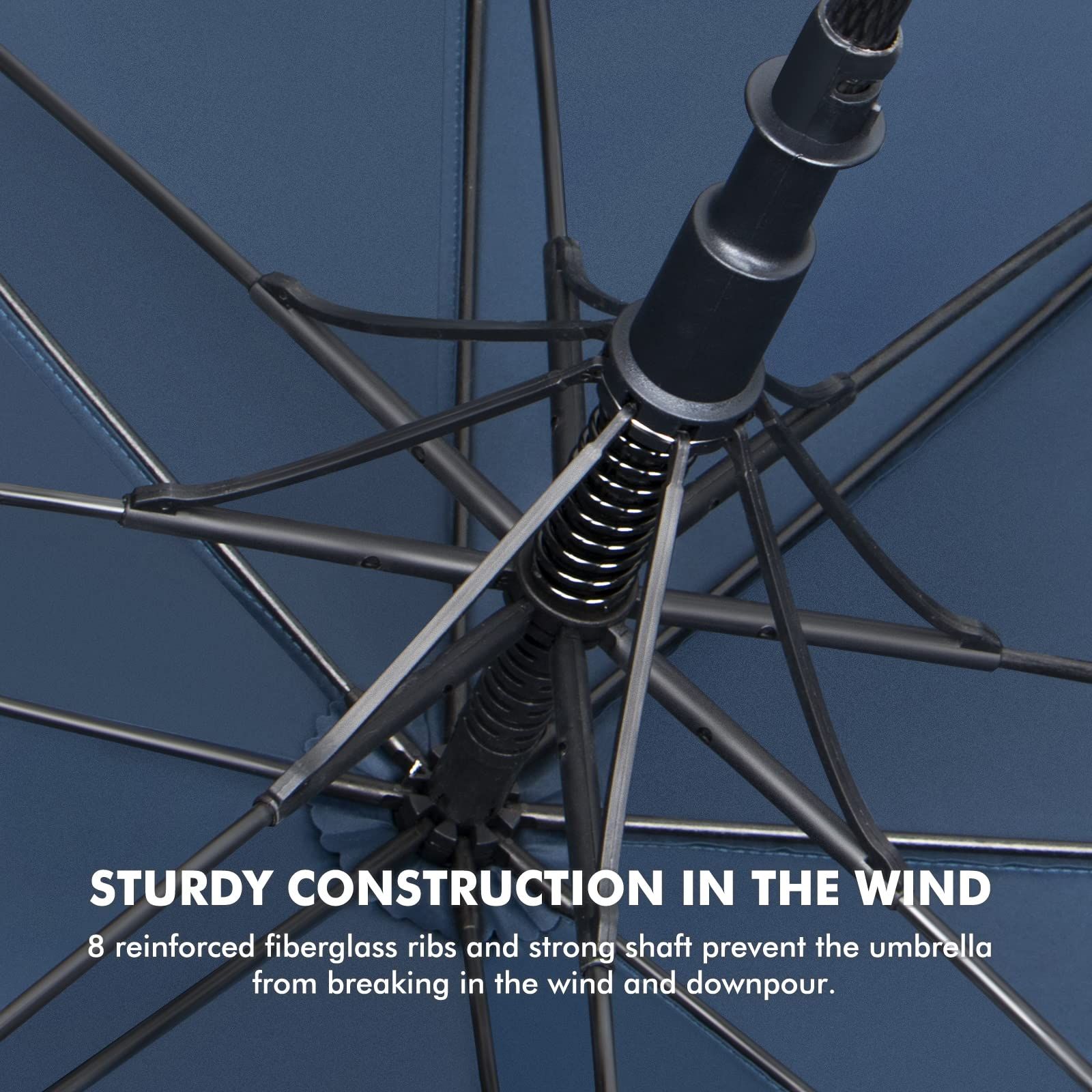 【高品質&耐久性】弊店の丈夫なゴルフ傘は210T防水生地で作られており、優れた防水性とUVカットに優れた生地です。日よけになるだけでなく、雨も防ぐことができます。8本の骨は強化ガラス繊維で作られており、ゴルフ傘全体の重量を軽くしています。豪雨や嵐にも耐えることができます。嵐が来ても壊れたり倒れたりせず、雨風から身を守ってくれる頼もしい傘です。