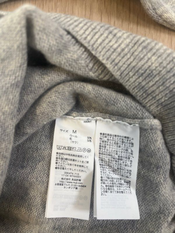 【226429】MUJI 無印良品 長袖ニット カーディガン ウール ヤク混 ストレッチ M ・ グレー